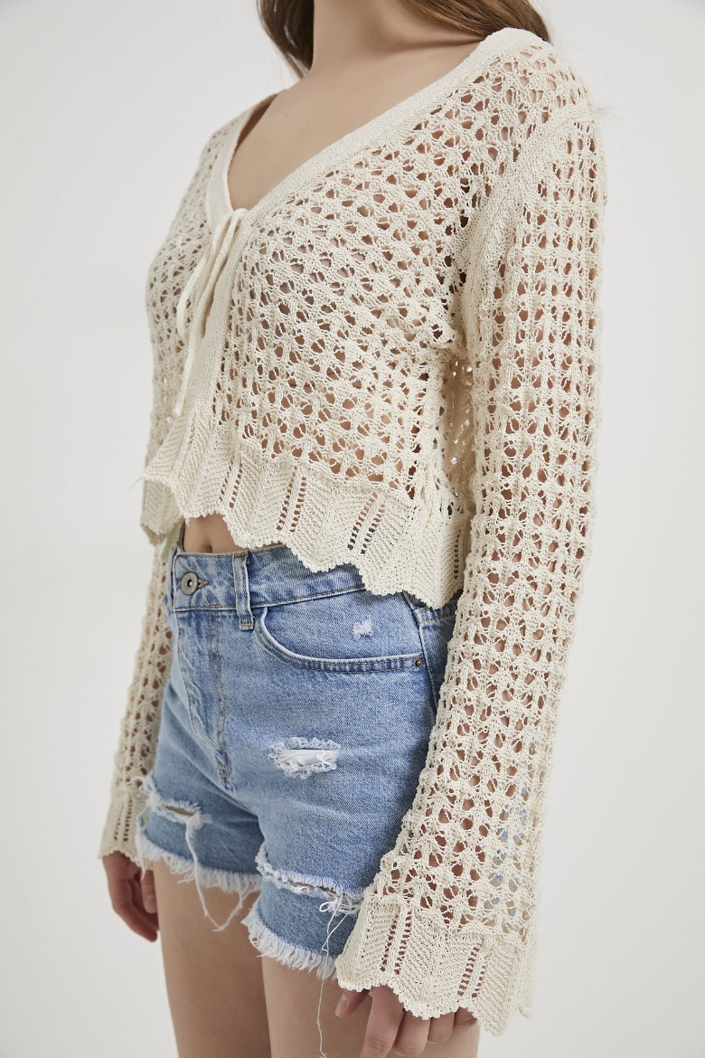 ARMALIFE 3018 BAĞCIK DETAYLI CROP TRİKO KADIN HIRKA