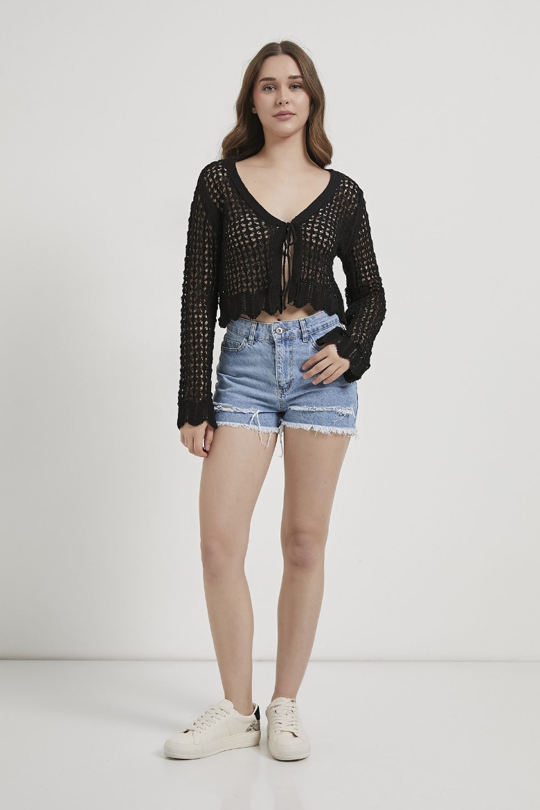 ARMALIFE 3018 BAĞCIK DETAYLI CROP TRİKO KADIN HIRKA