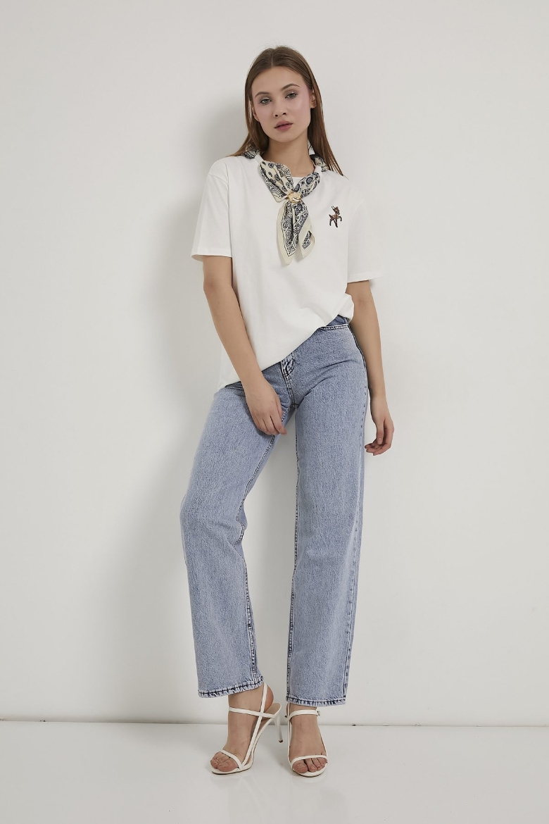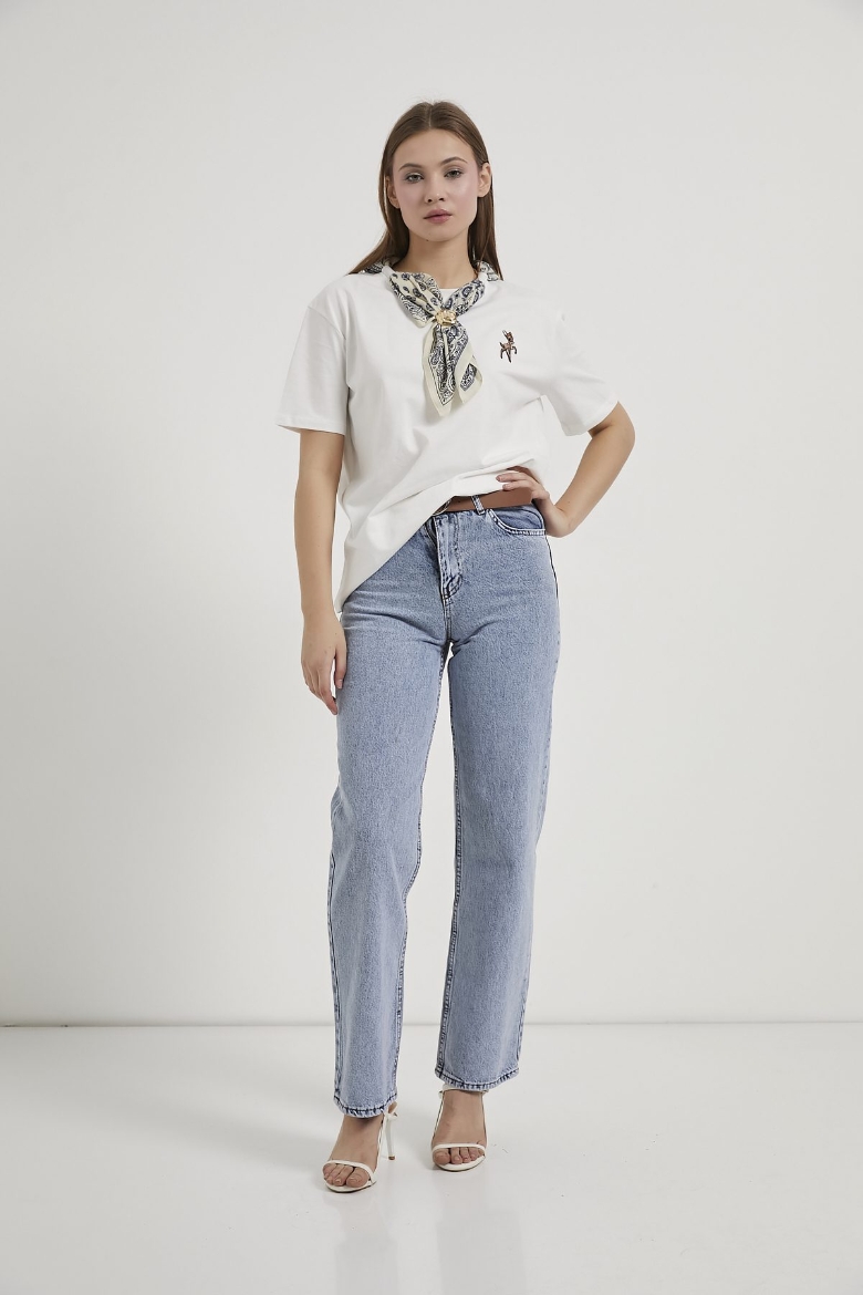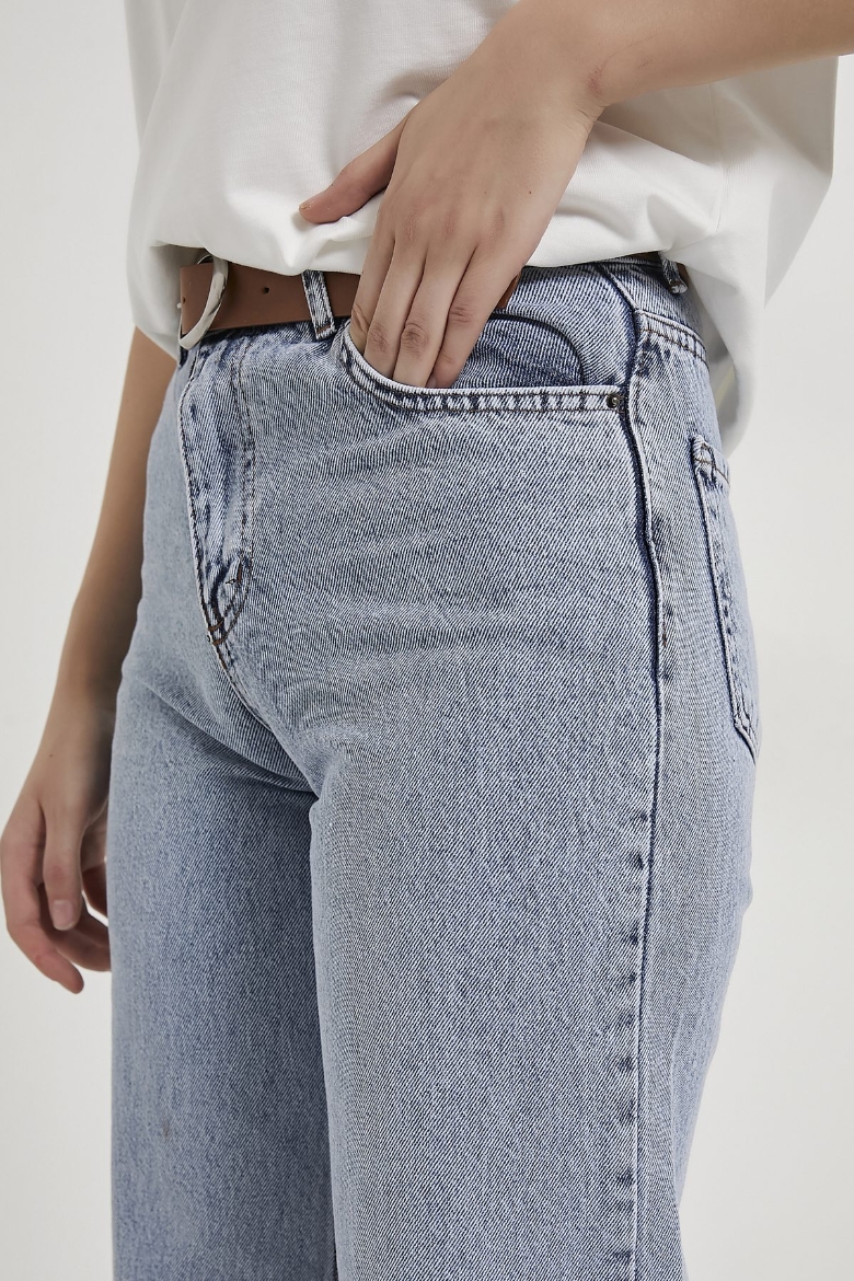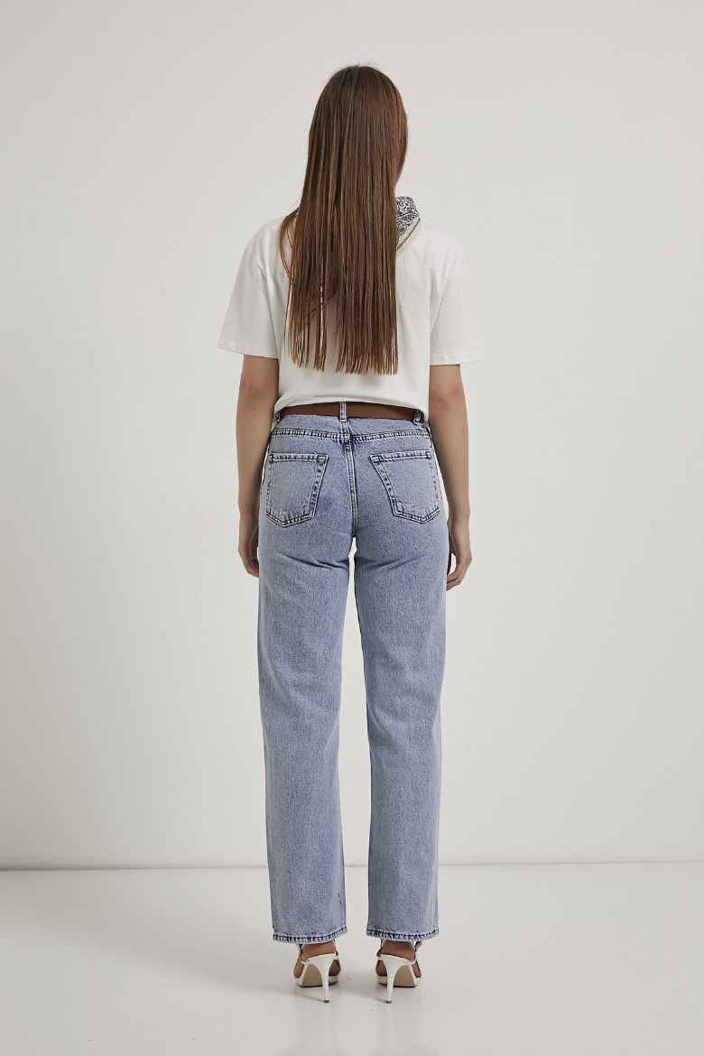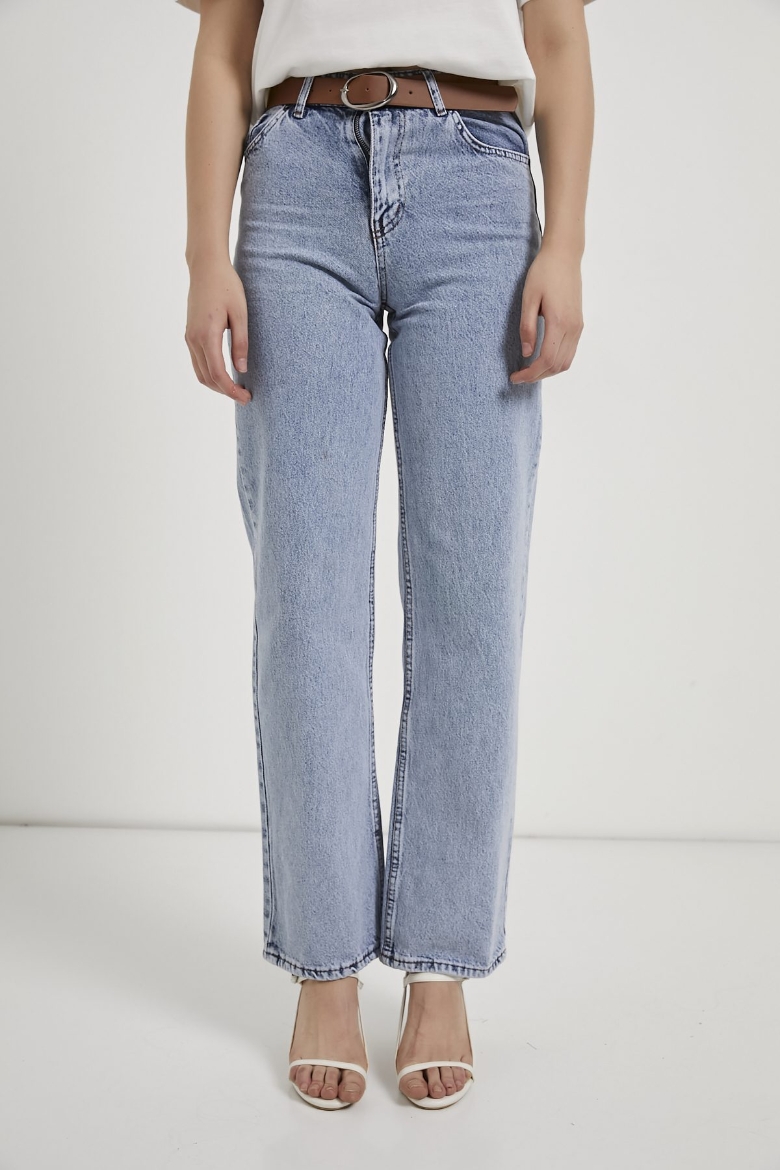ARMALIFE 3049-1 KEMERLİ YÜKSEK BEL STRAIGHT FİT DENİM KADIN PANTOLON