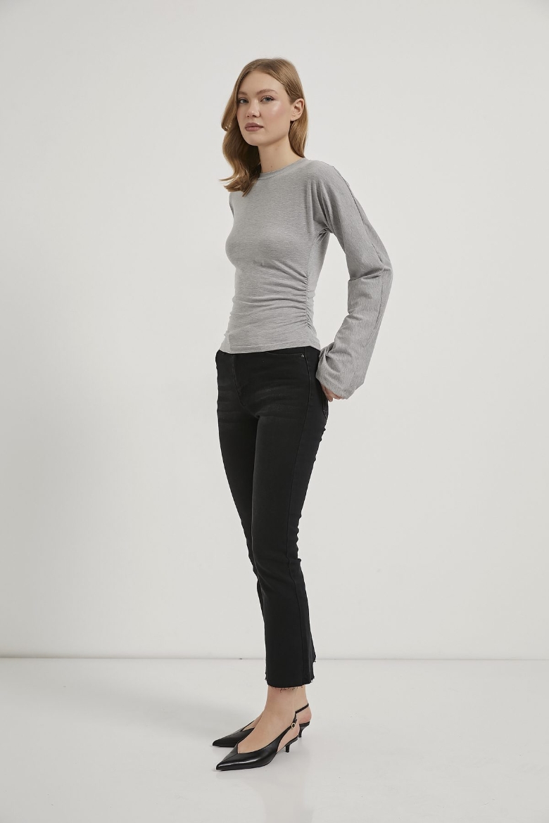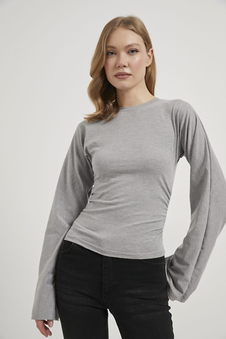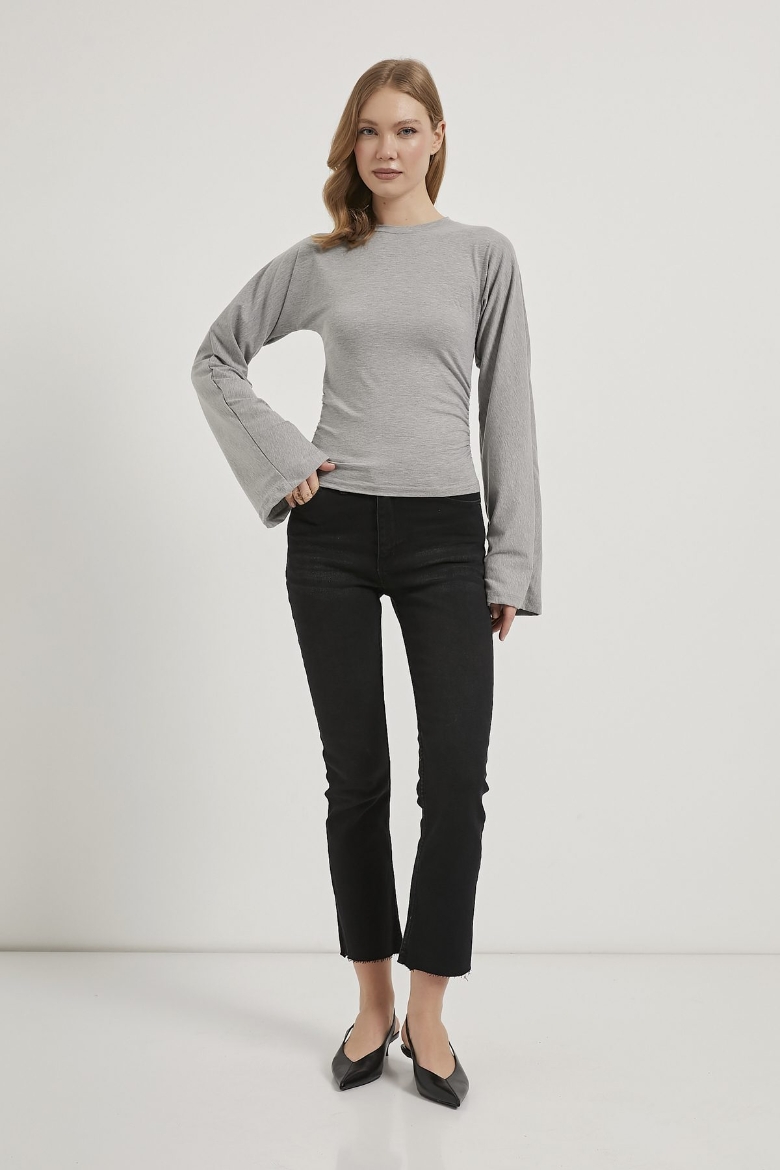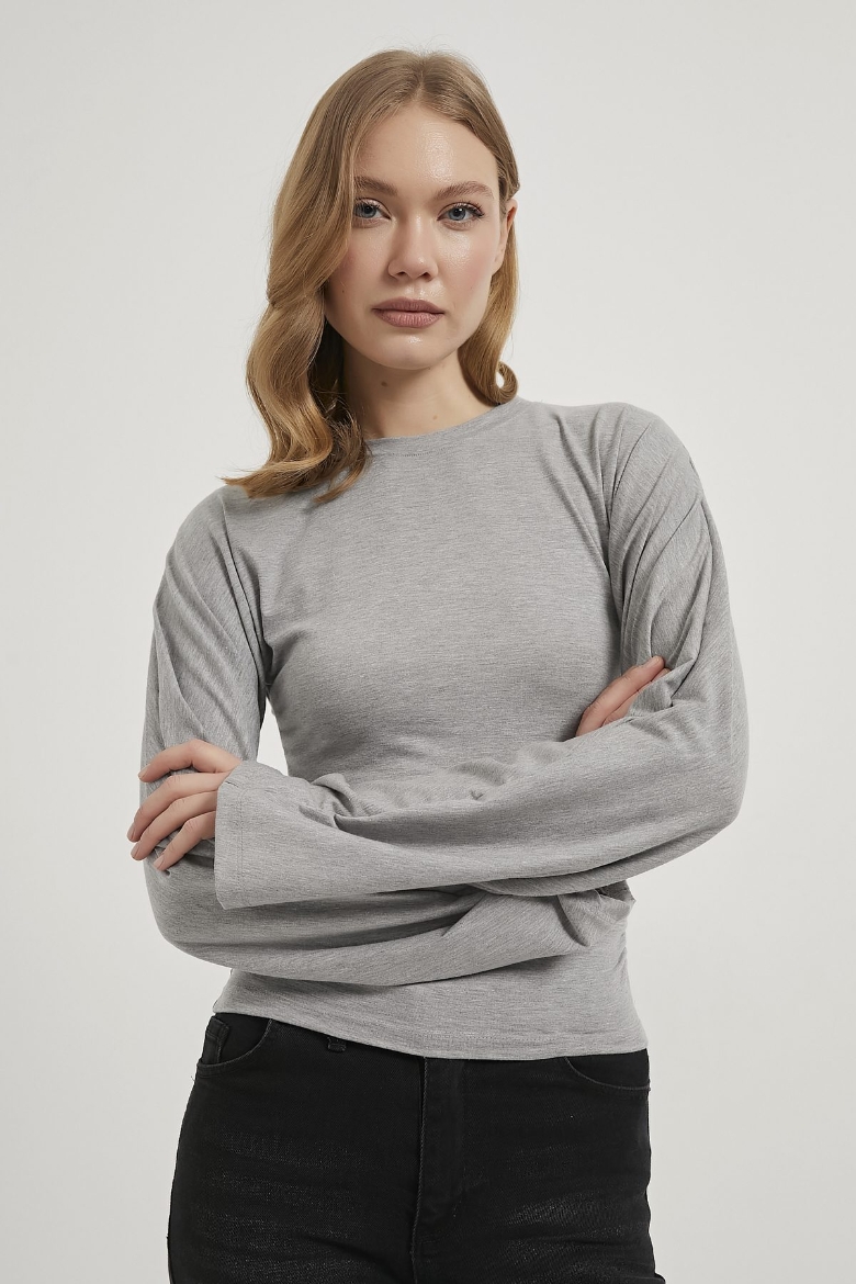 ARMALIFE 3074 İSPANYOL KOL BÜZGÜ DETAYLI REGULAR NORMAL KALIP ÖRME KADIN BLUZ