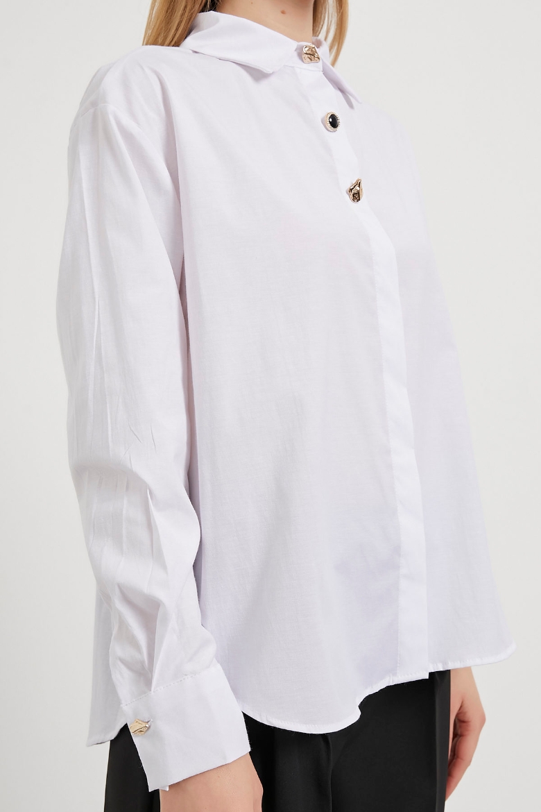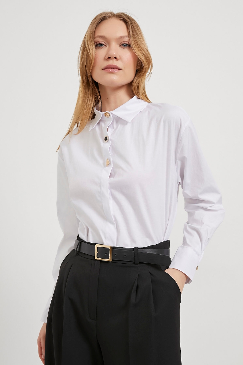ARMALIFE 3176 YAKASI GOLD AKSESUAR DÜĞMELİ KADIN GÖMLEK