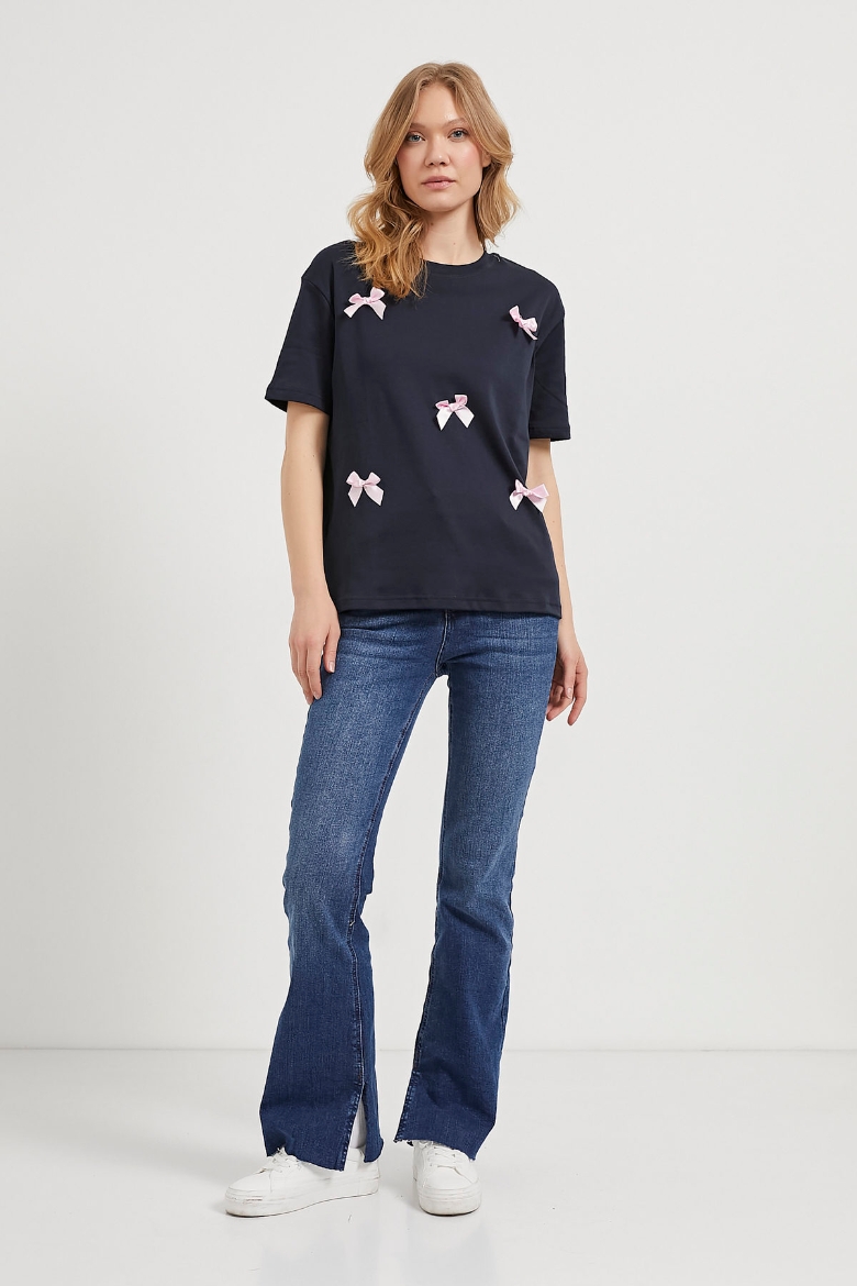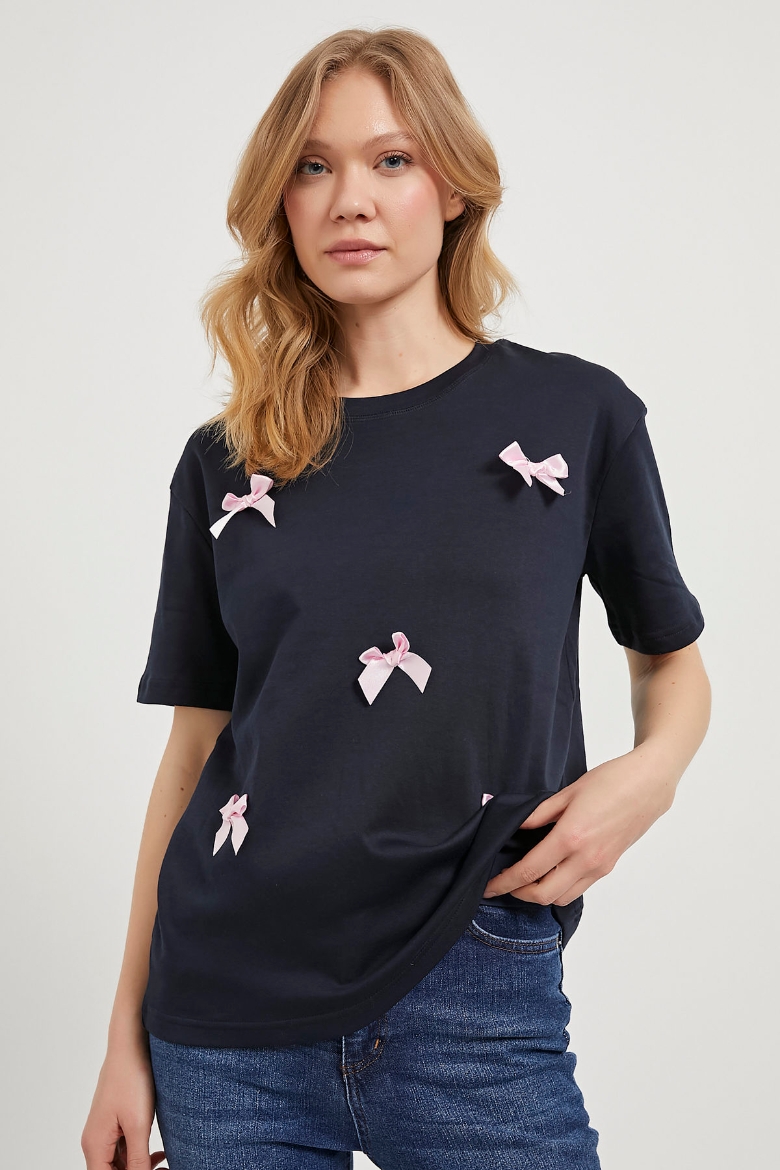 ARMALIFE 3221 FİYONK DETAYLI BİS YAKA KADIN T-SHIRT
