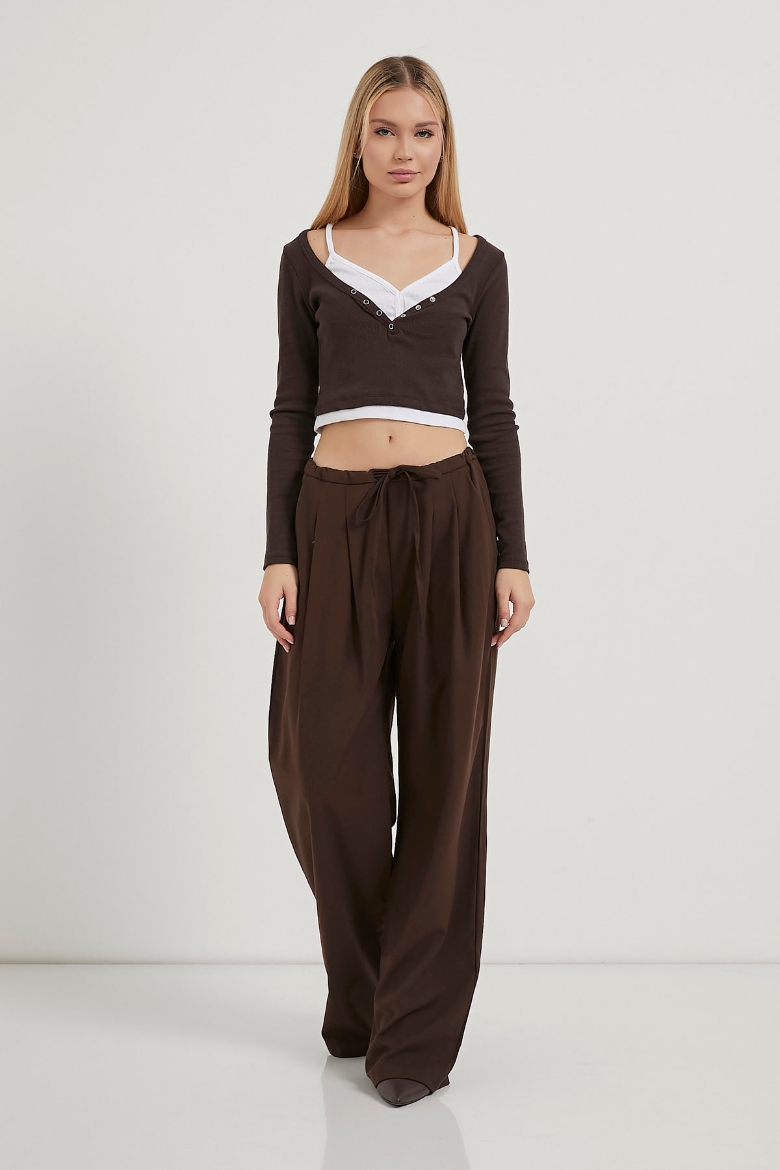 ARMALIFE 3819 PİLELİ BAĞCIK DETAYLI PALAZZO KADIN PANTOLON