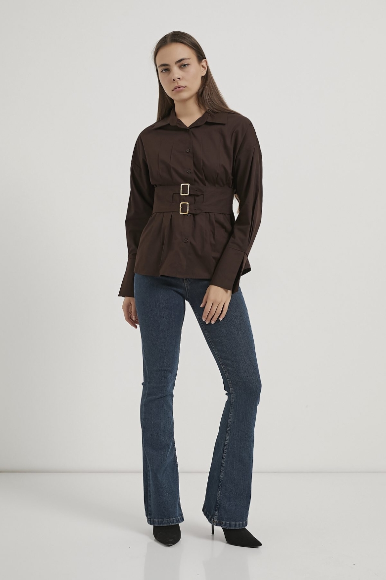 ARMALIFE 3820 BELİ KEMERLİ KORSAJ DETAYLI PREMIUM KADIN GÖMLEK