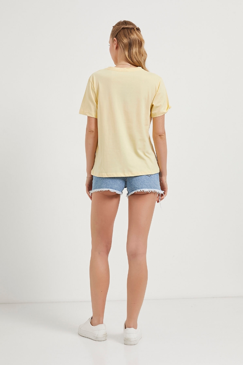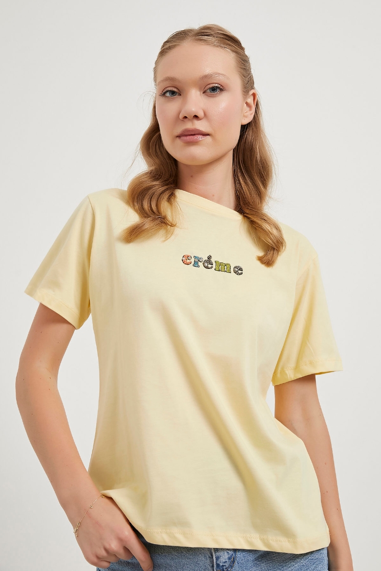 ARMALIFE 4002 CREME BONCUK NAKIŞLI BİS YAKA KADIN T-SHIRT