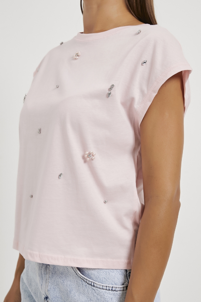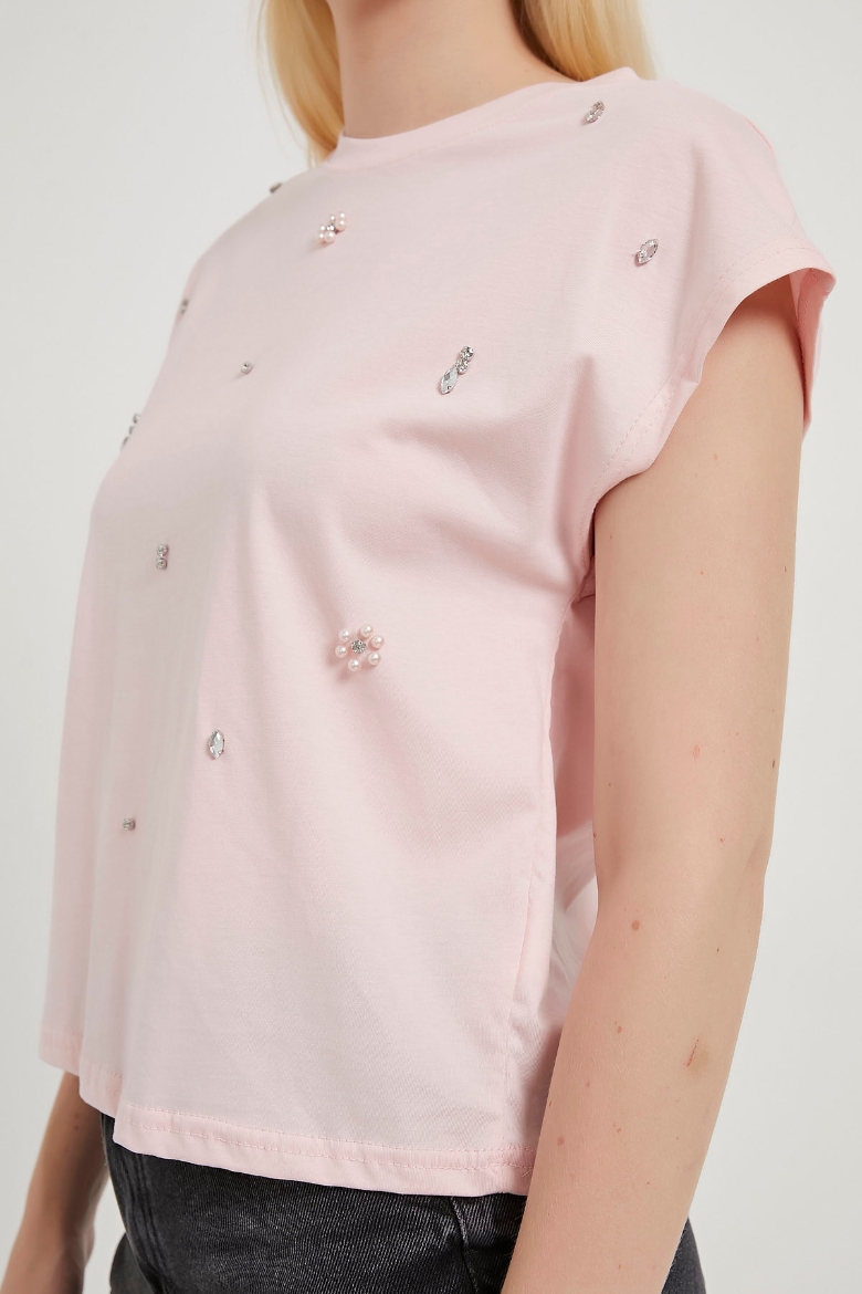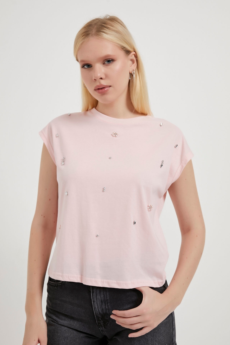 ARMALIFE 4007 TAŞ-İNCİ DETAYLI KOLSUZ KADIN T-SHIRT