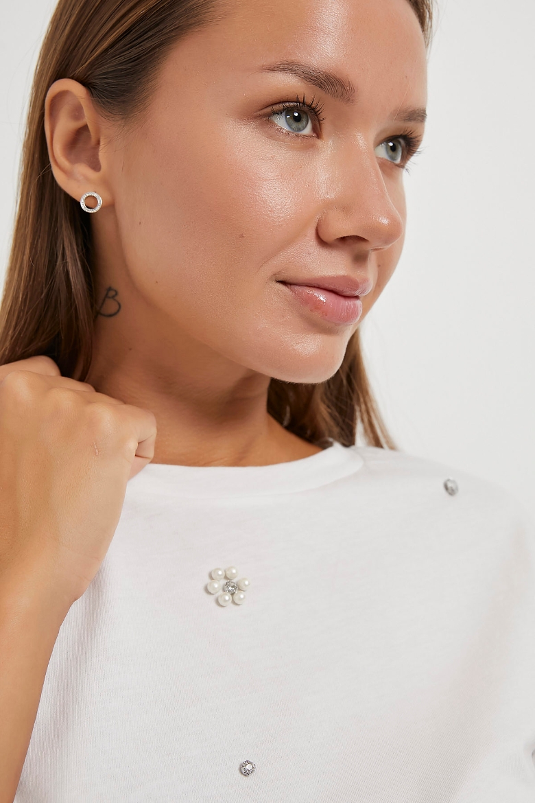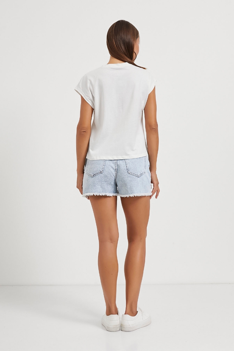 ARMALIFE 4007 TAŞ-İNCİ DETAYLI KOLSUZ KADIN T-SHIRT