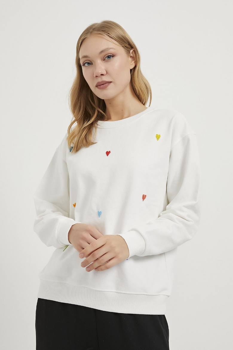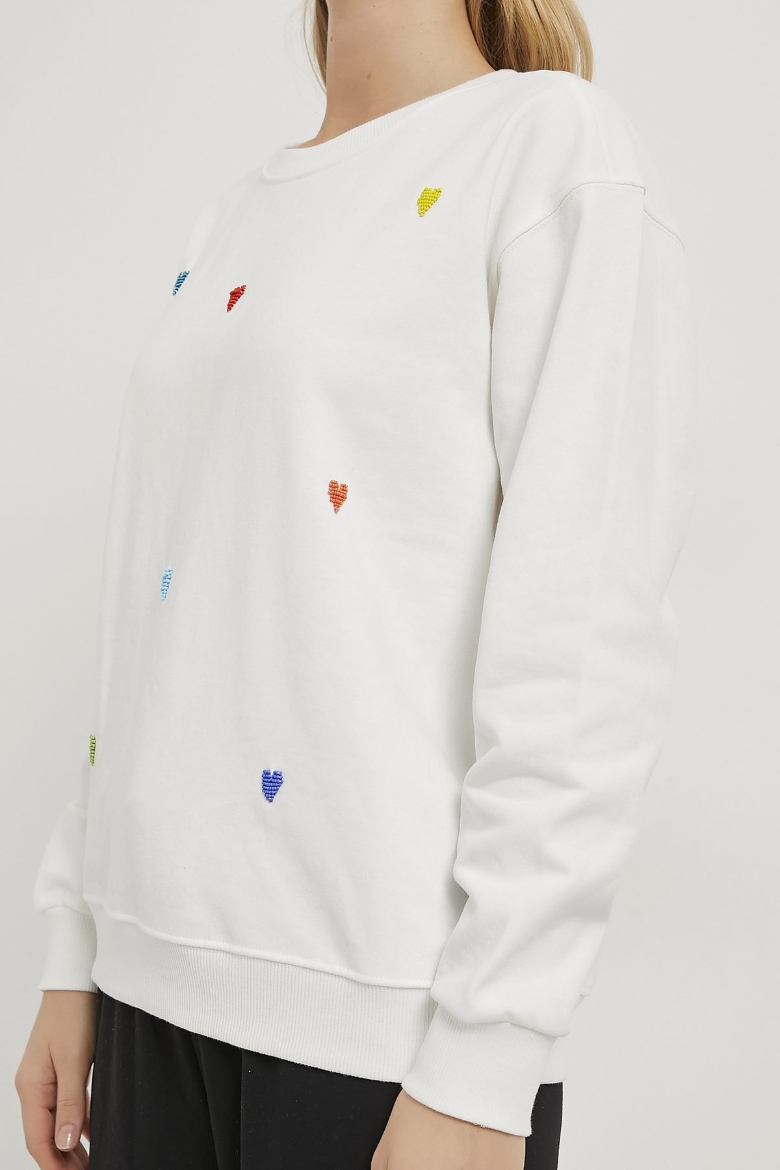ARMALIFE 4013 KALP BONCUK İŞLEMELİ BİS YAKA KADIN SWEAT
