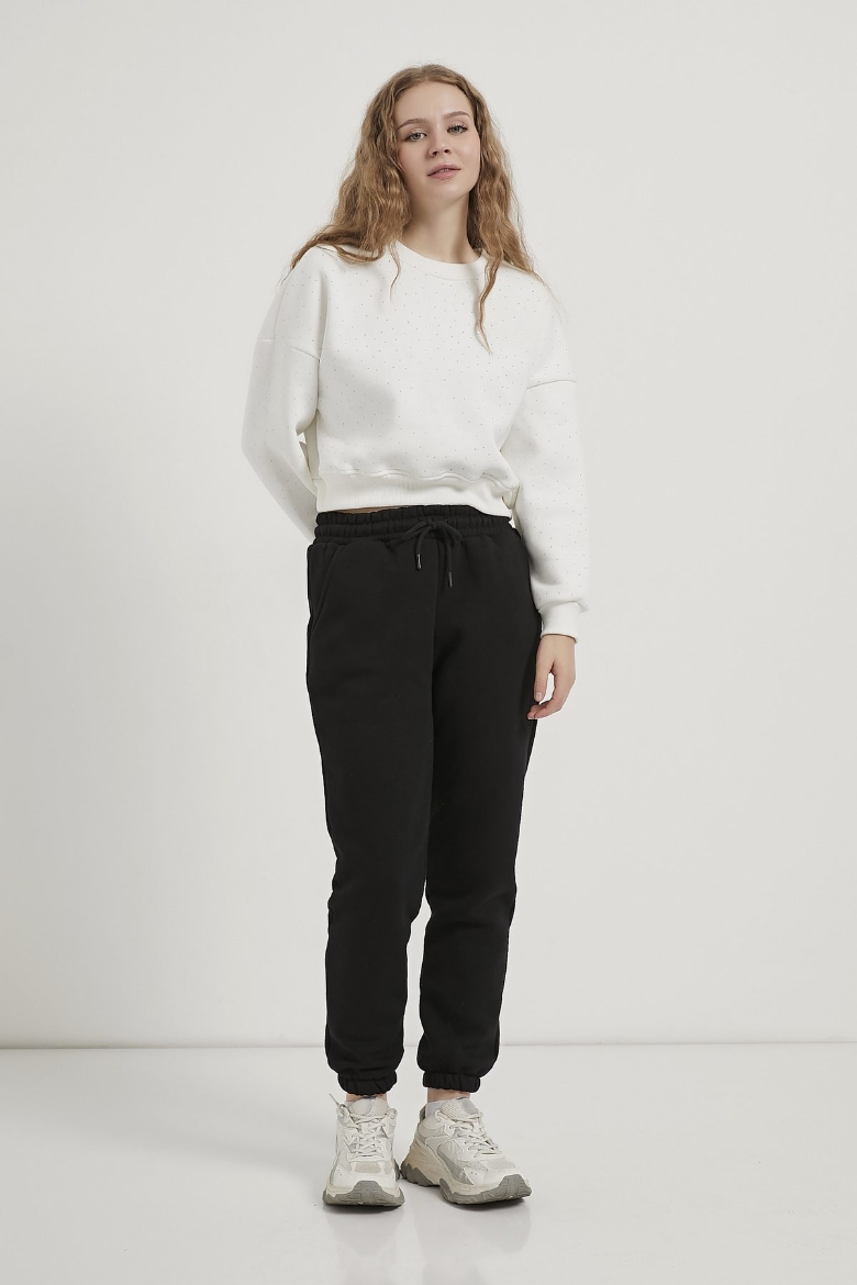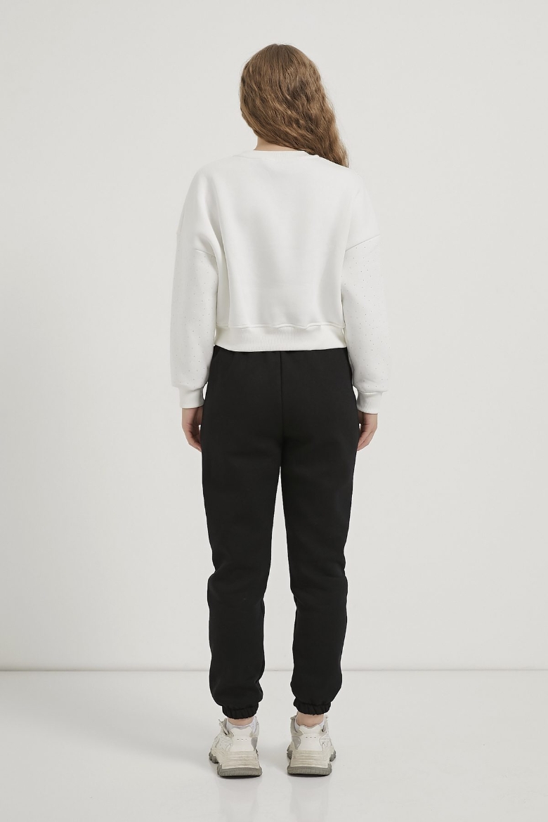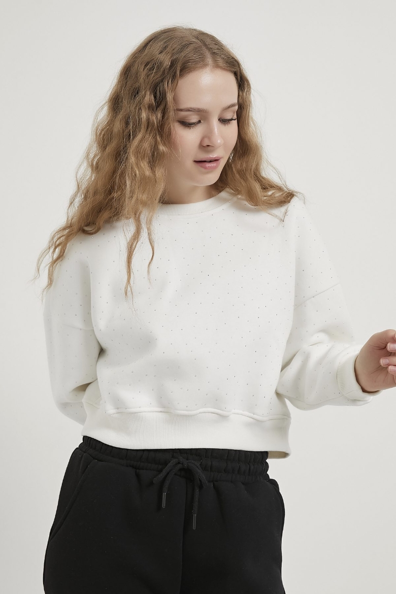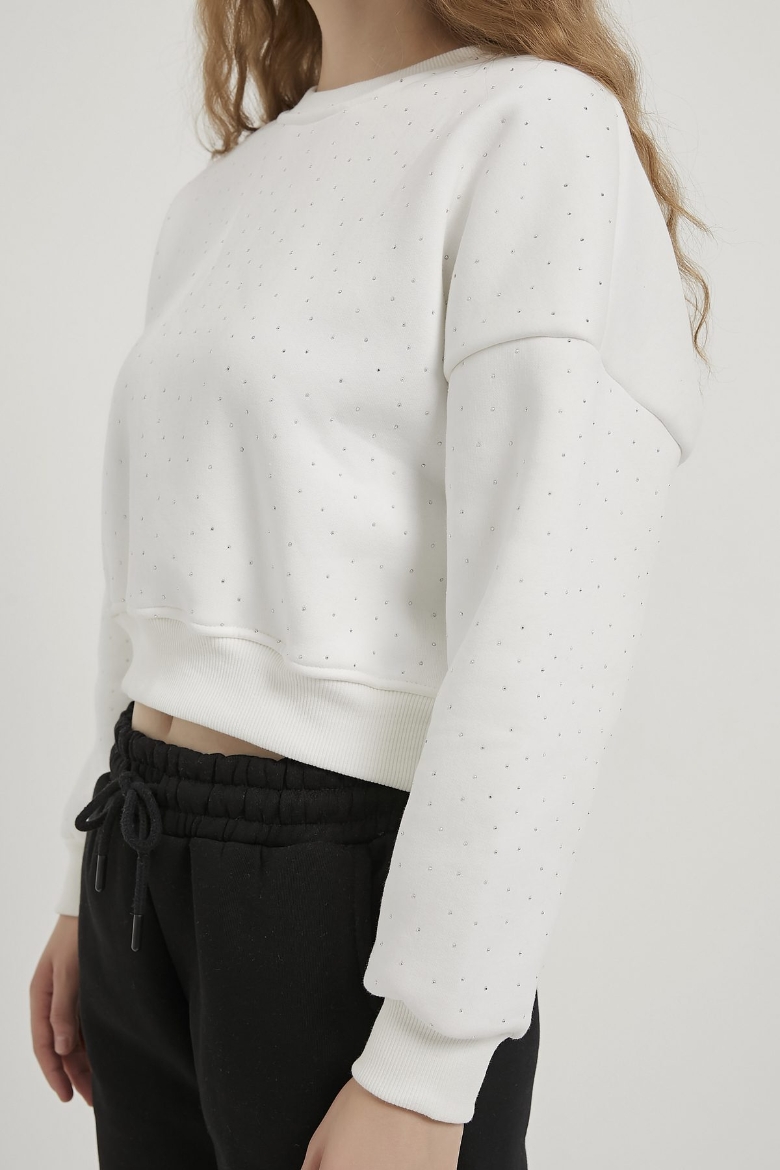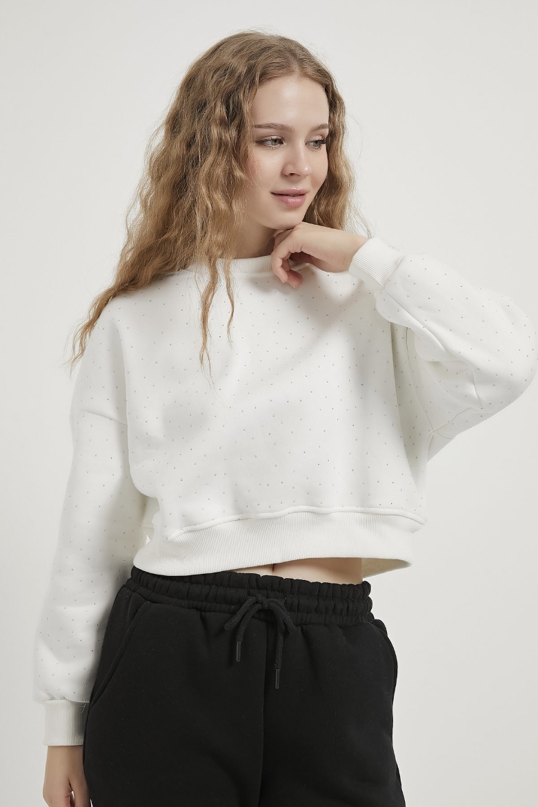 ARMALIFE 4015 SERPME TAŞLI CROP BİS YAKA KADIN SWEAT