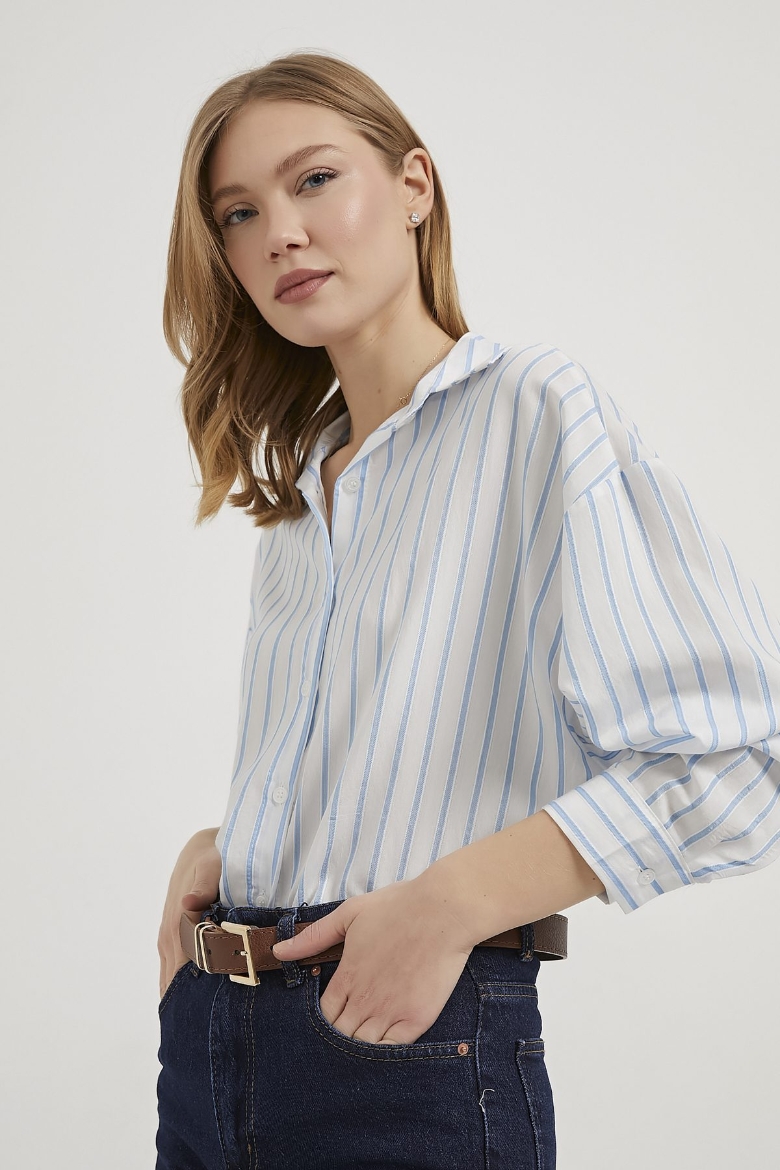 ARMALIFE 4035 ÇİZGİLİ RAHAT KALIP KADIN GÖMLEK