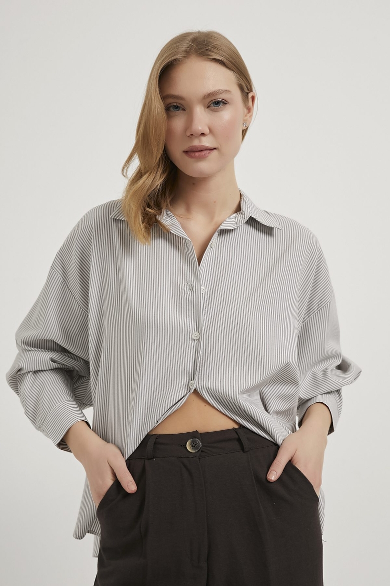 ARMALIFE 4071 İNCE ÇİZGİLİ KADIN GÖMLEK