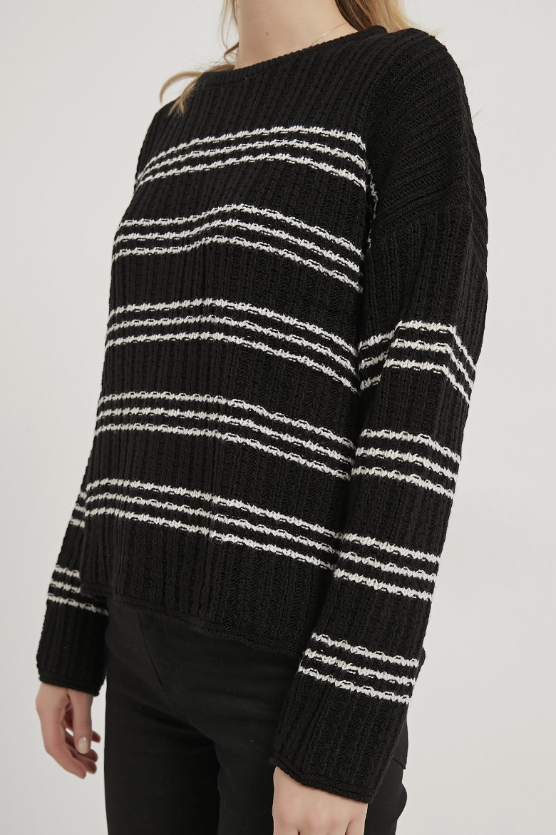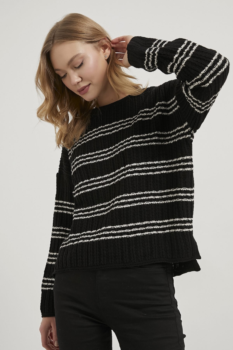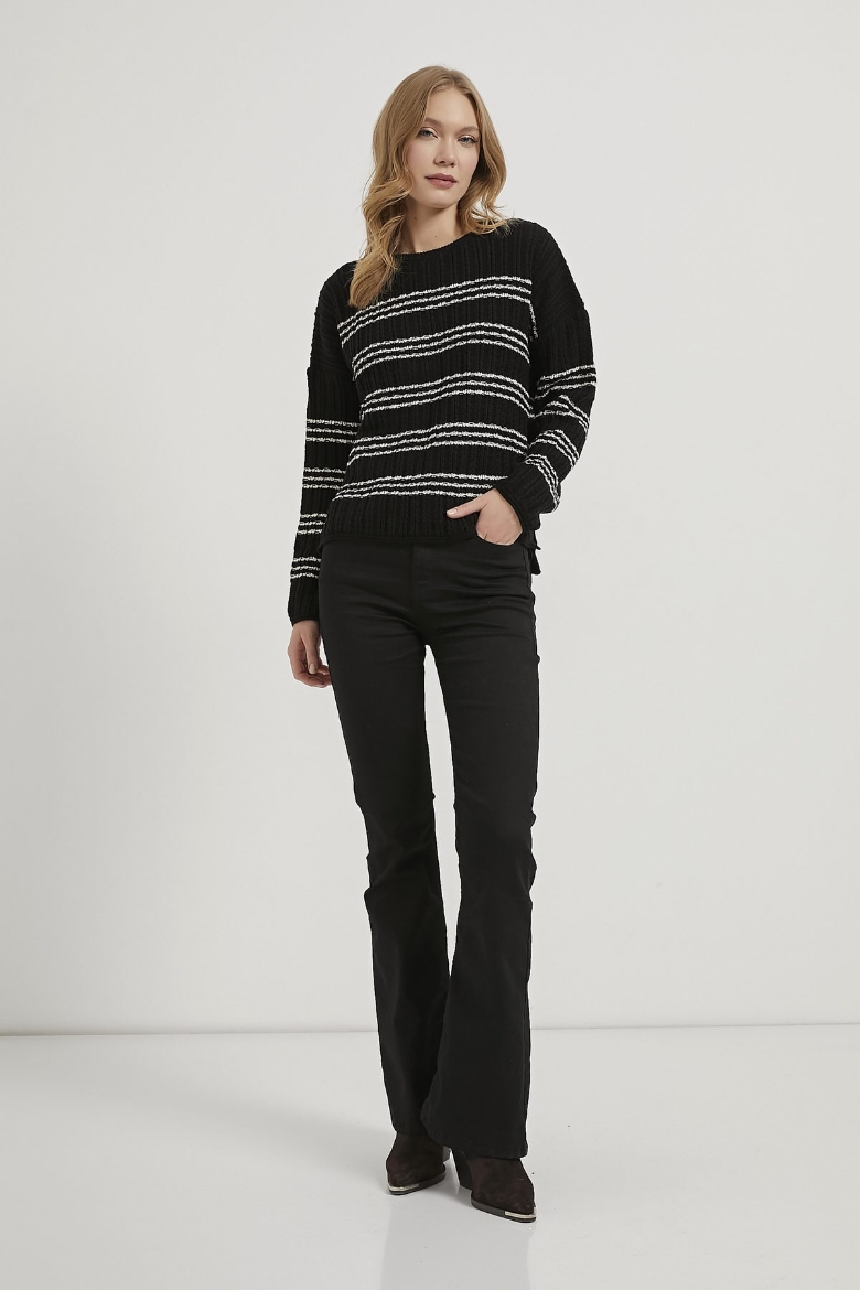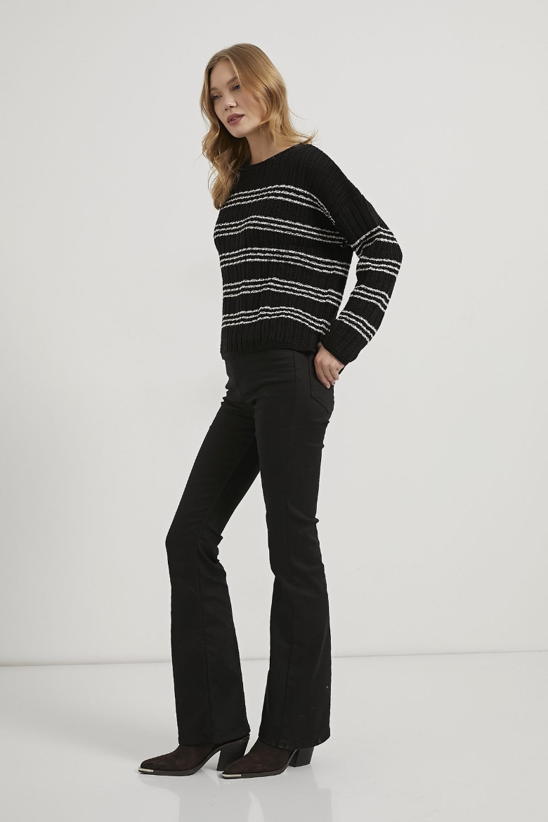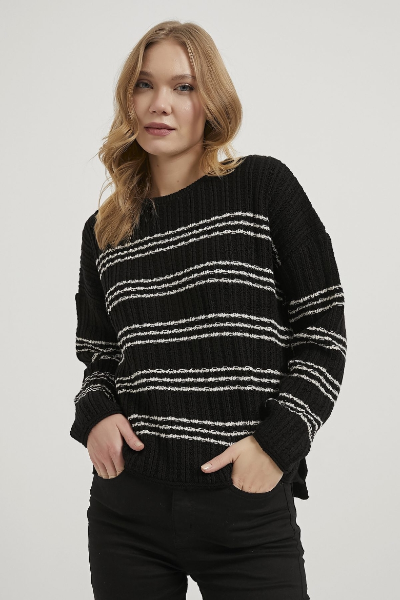 ARMALIFE 4199 BİS YAKA ÇİZGİLİ TRİKO KADIN KAZAK