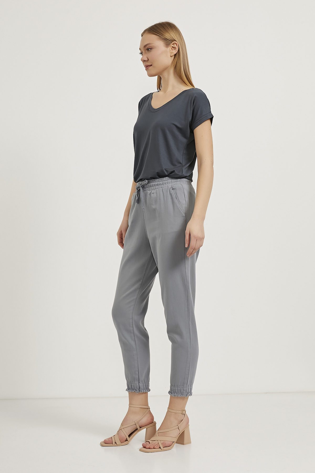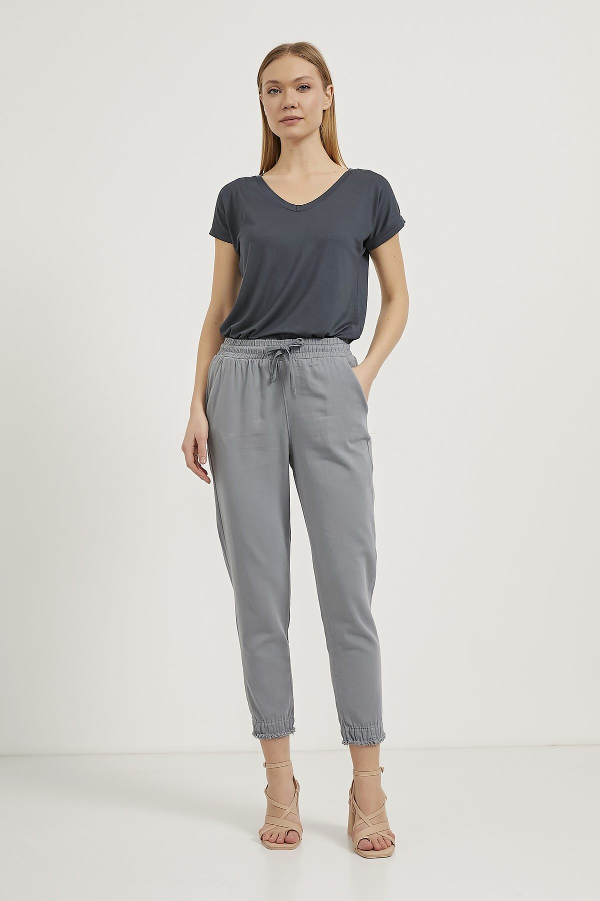 ARMALIFE 4228 BELİ LASTİKLİ DOĞAL KUMAŞ RAHAT FİT KADIN PANTOLON