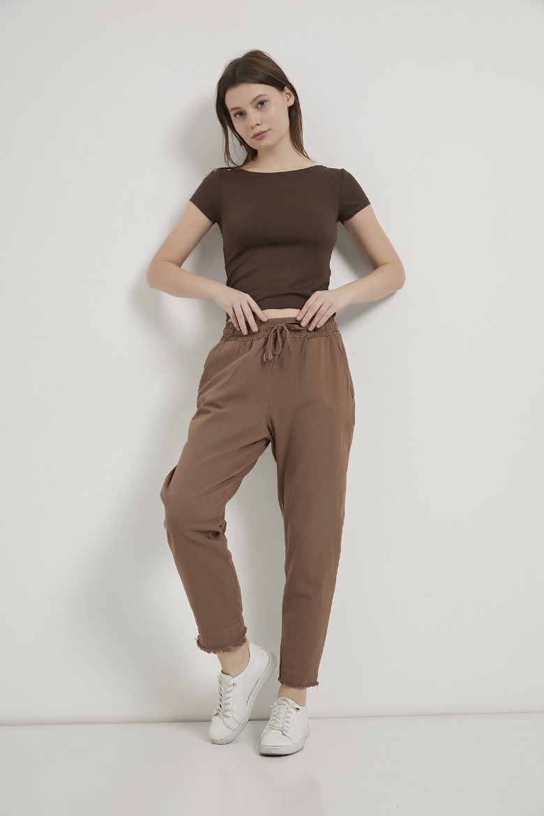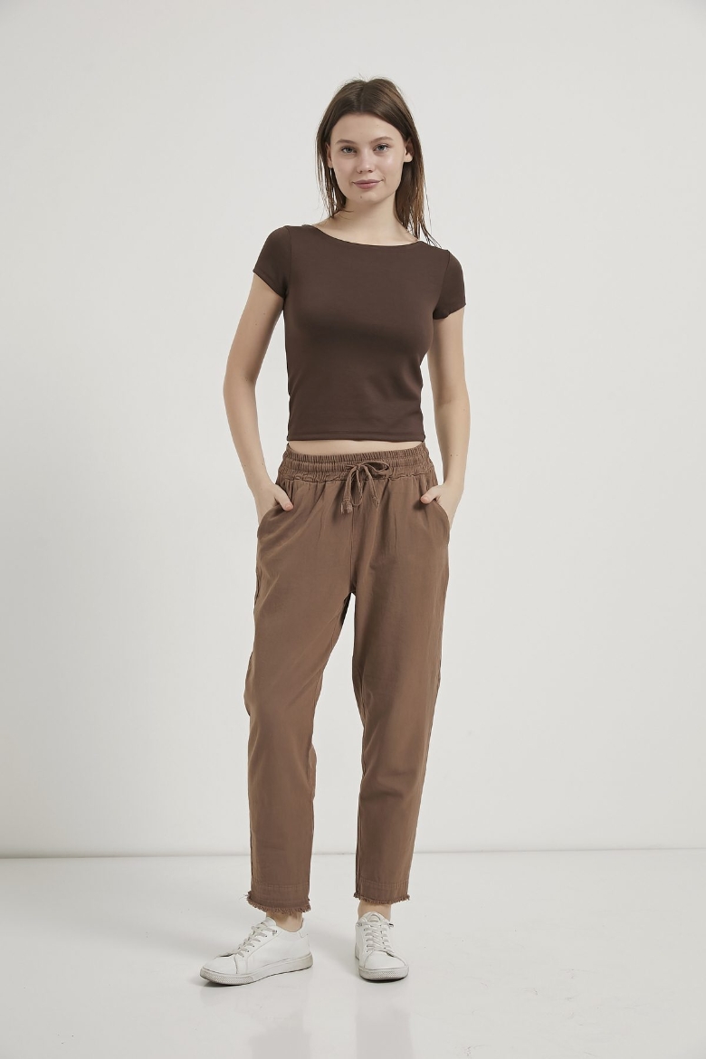 ARMALIFE 4228 BELİ LASTİKLİ DOĞAL KUMAŞ RAHAT FİT KADIN PANTOLON