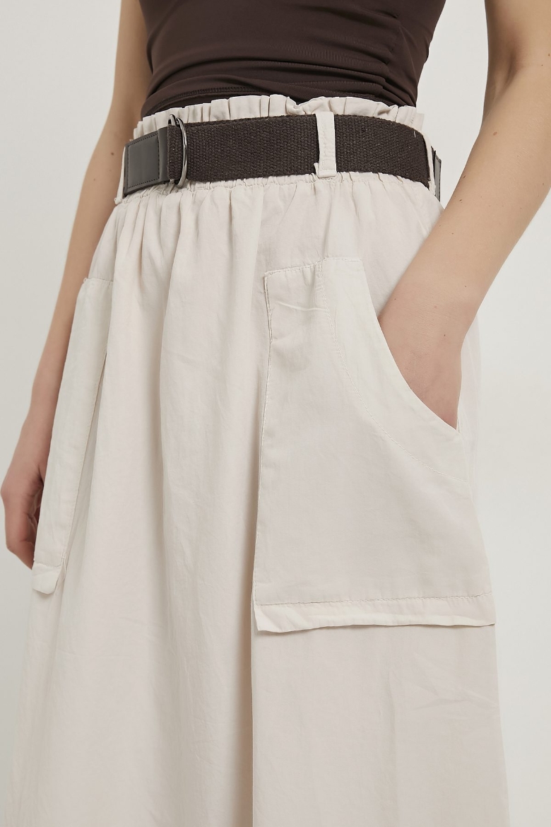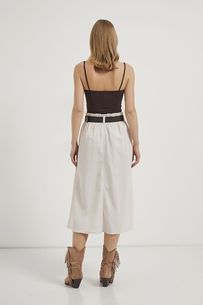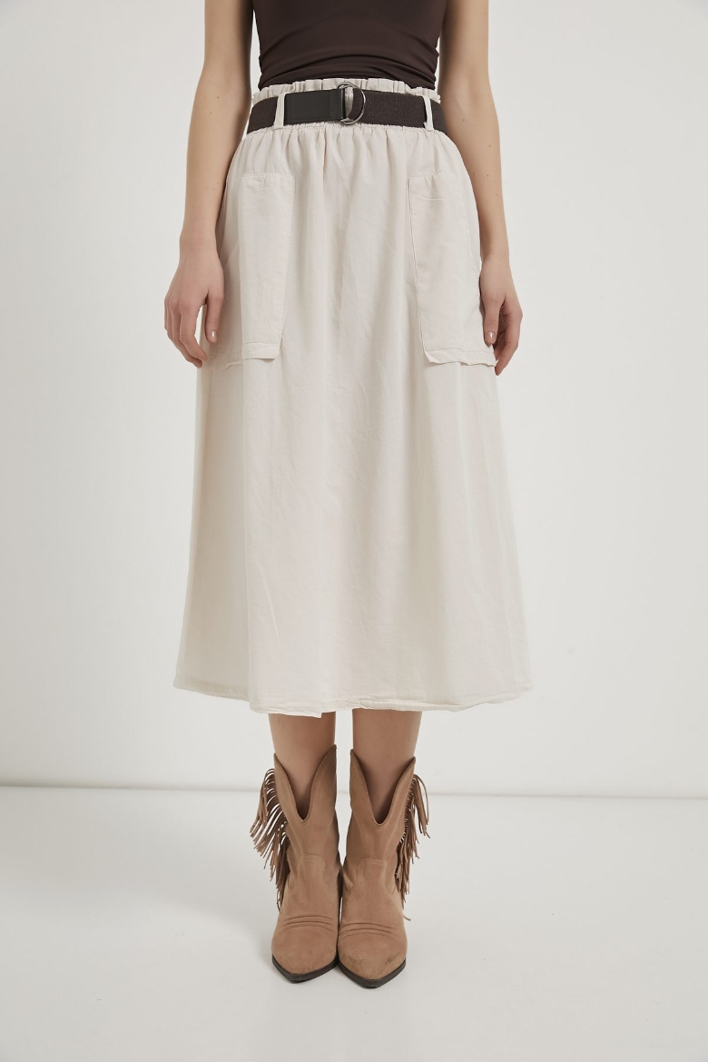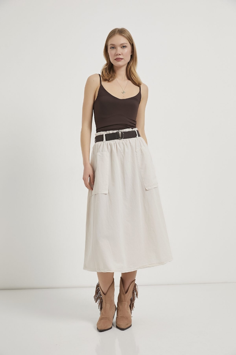 ARMALIFE 4450 PALASKA KEMERLİ CEP DETAYLI GABARDİN MİDİ KADIN ETEK