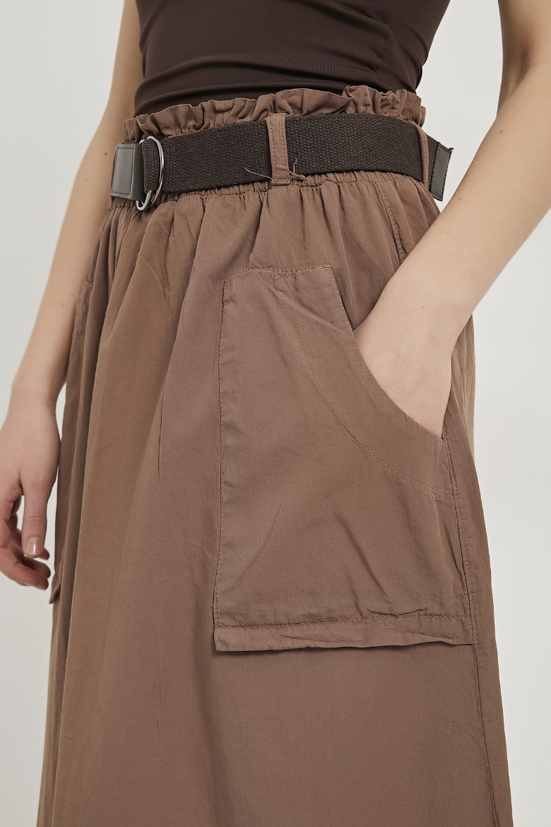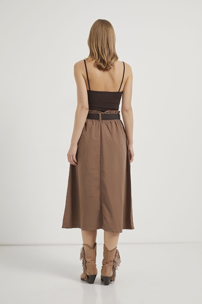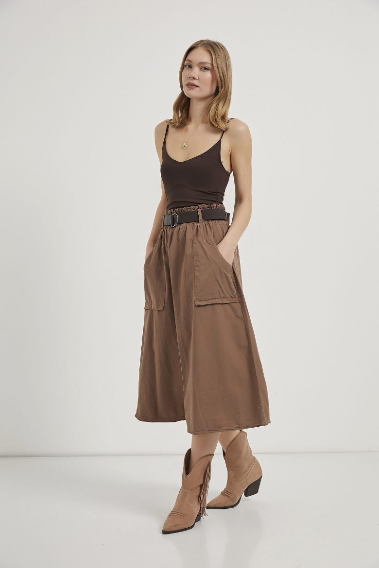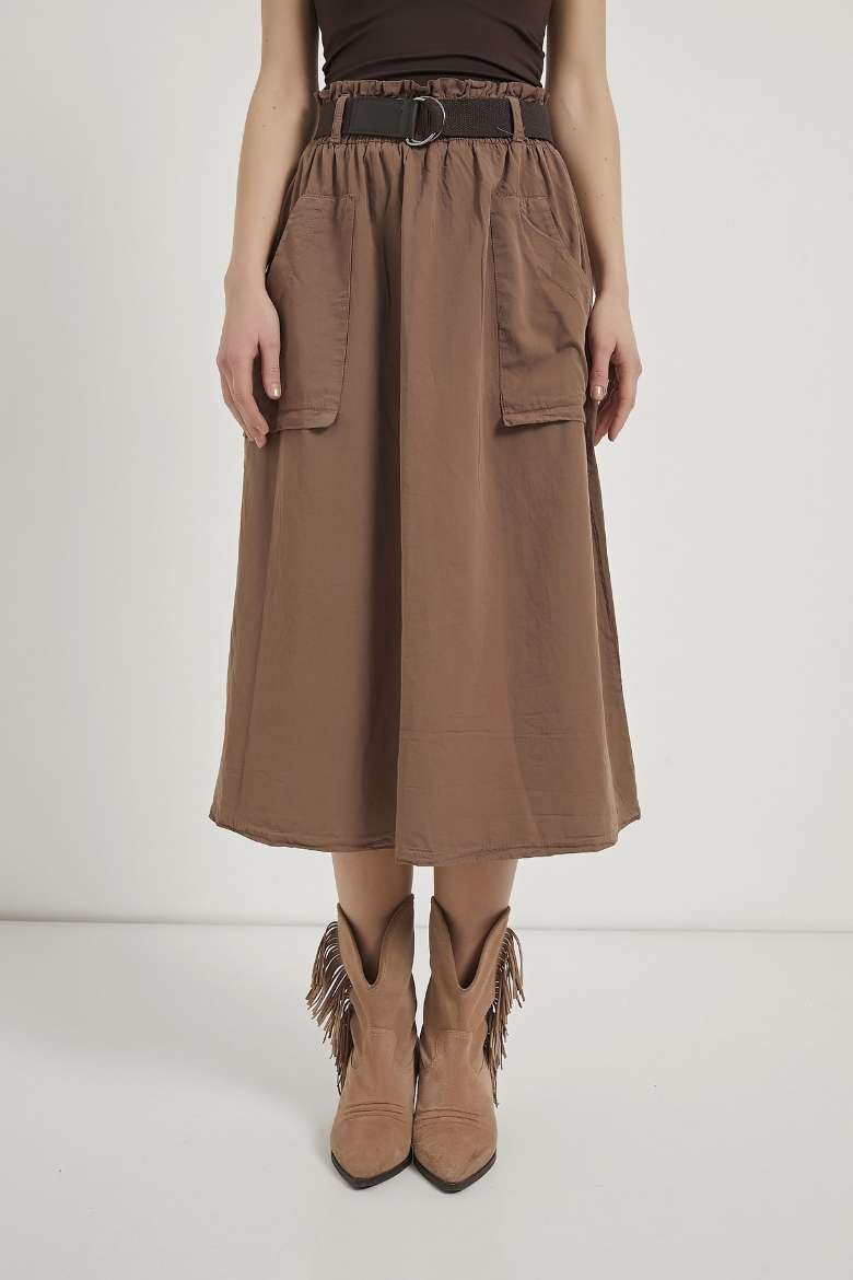 ARMALIFE 4450 PALASKA KEMERLİ CEP DETAYLI GABARDİN MİDİ KADIN ETEK
