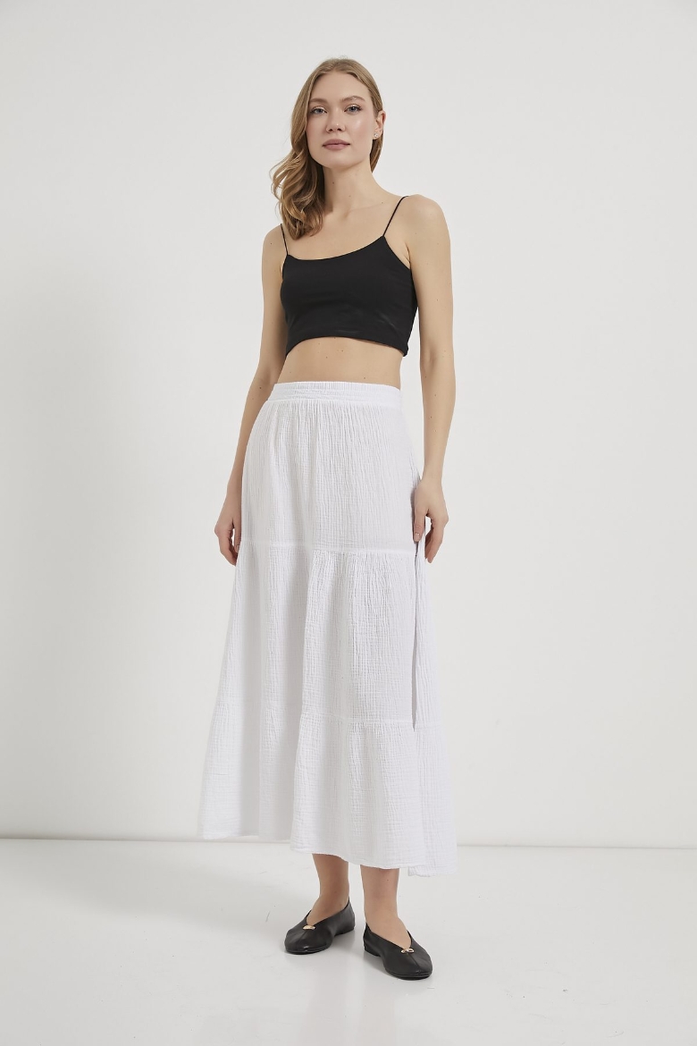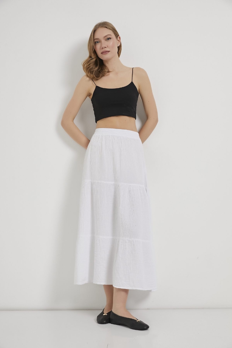 ARMALIFE 4477 BELİ LASTİKLİ MUSLİN KLOŞ KADIN ETEK