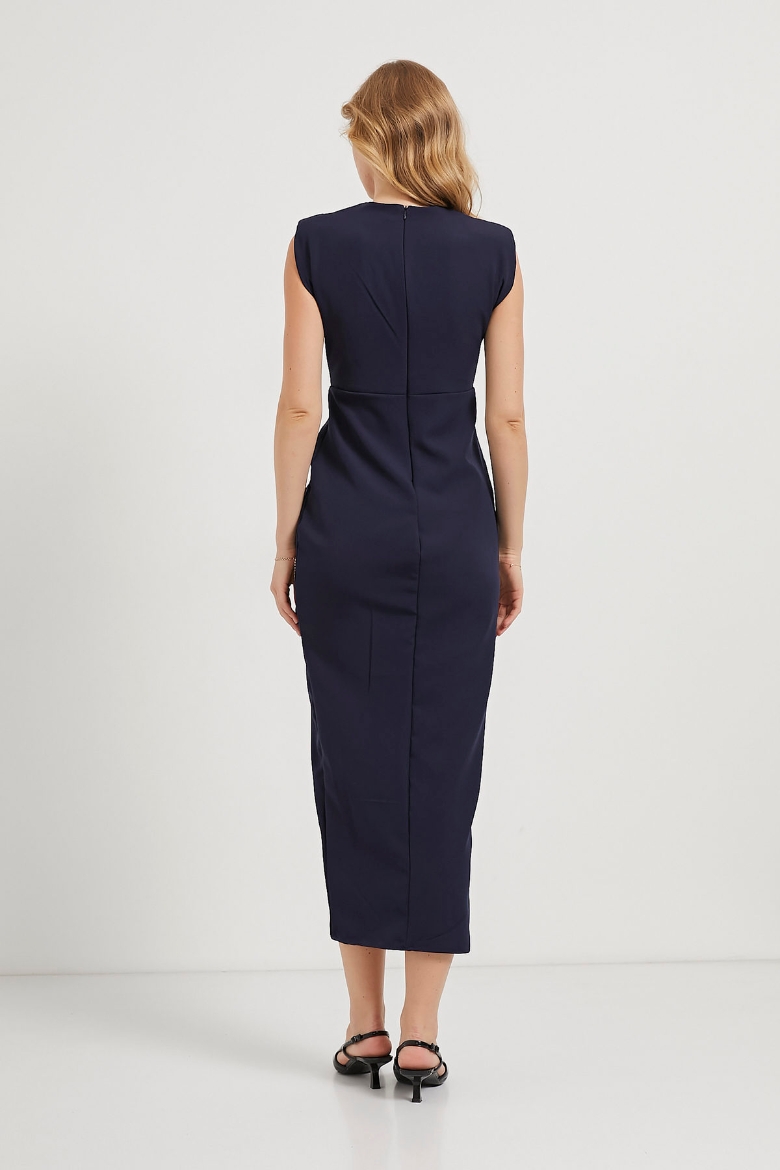 ARMALIFE 4503 GOL DÜĞME DETAYLI BÜZGÜLÜ KOLSUZ ESNEK KADIN ELBİSE
