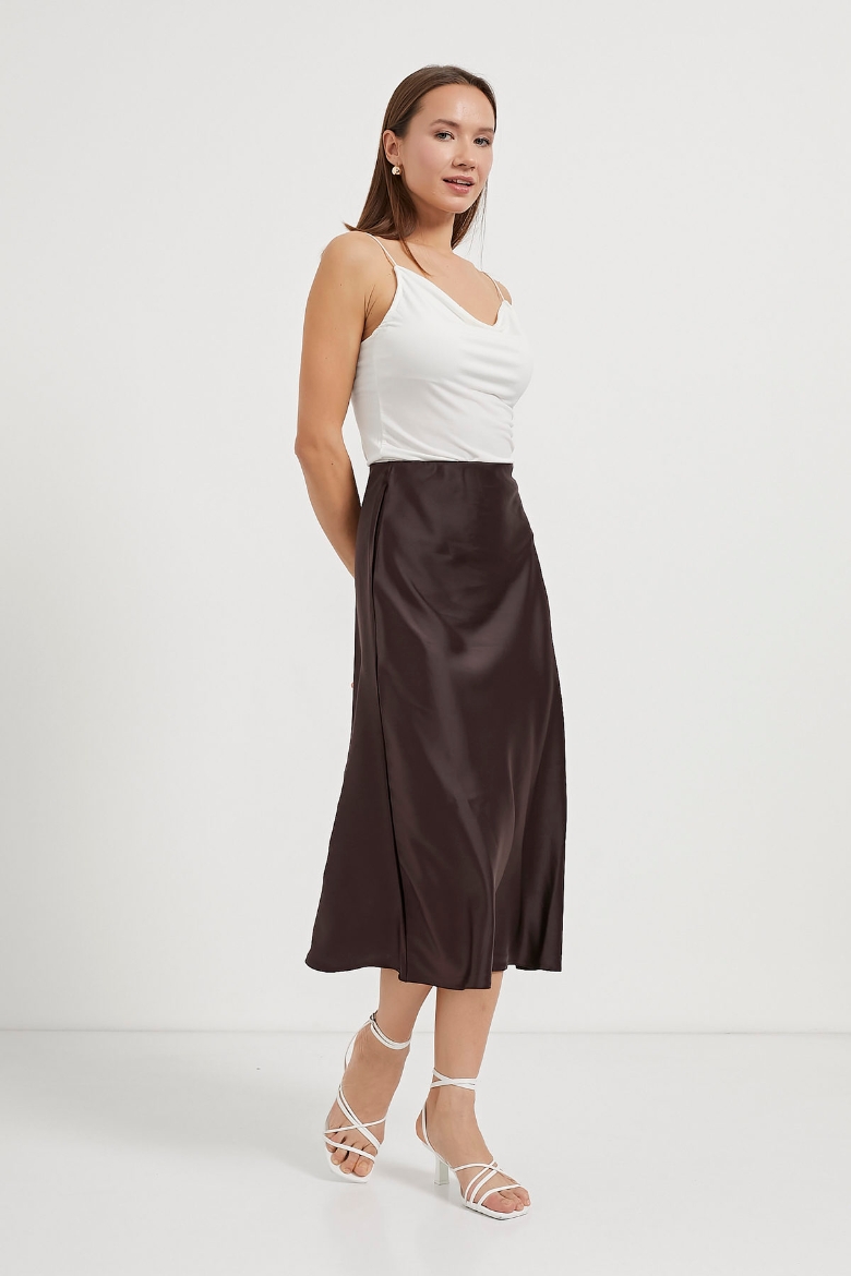 ARMALIFE 4519 YANI FERMUARLI MİDİ SATEN KADIN ETEK