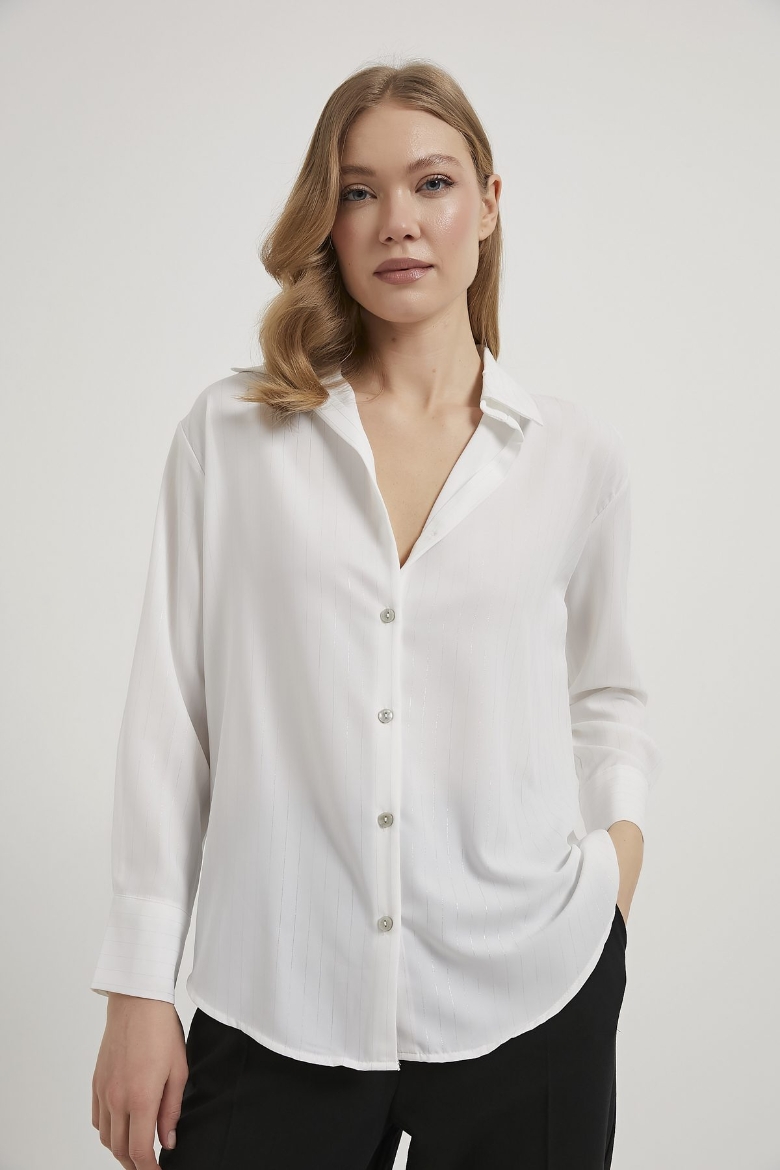 ARMALIFE 4520 SİM ÇİZGİ ŞERİTLİ KADIN GÖMLEK