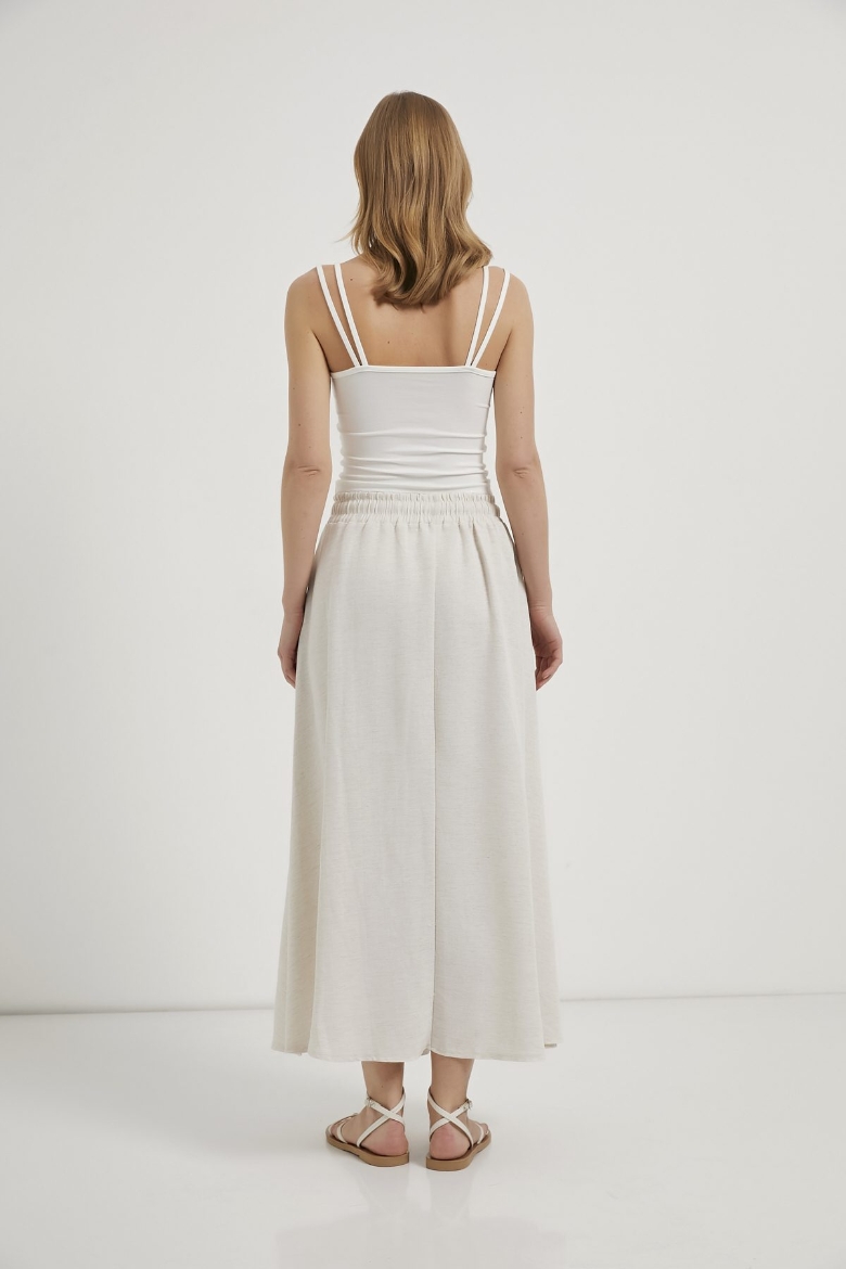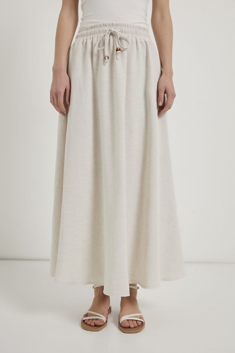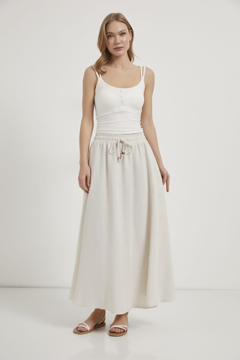 ARMALIFE 4758 BELİ BAĞCIKLI LASTİKLİ KETEN GÖRÜNÜMLÜ MAXI KADIN ETEK