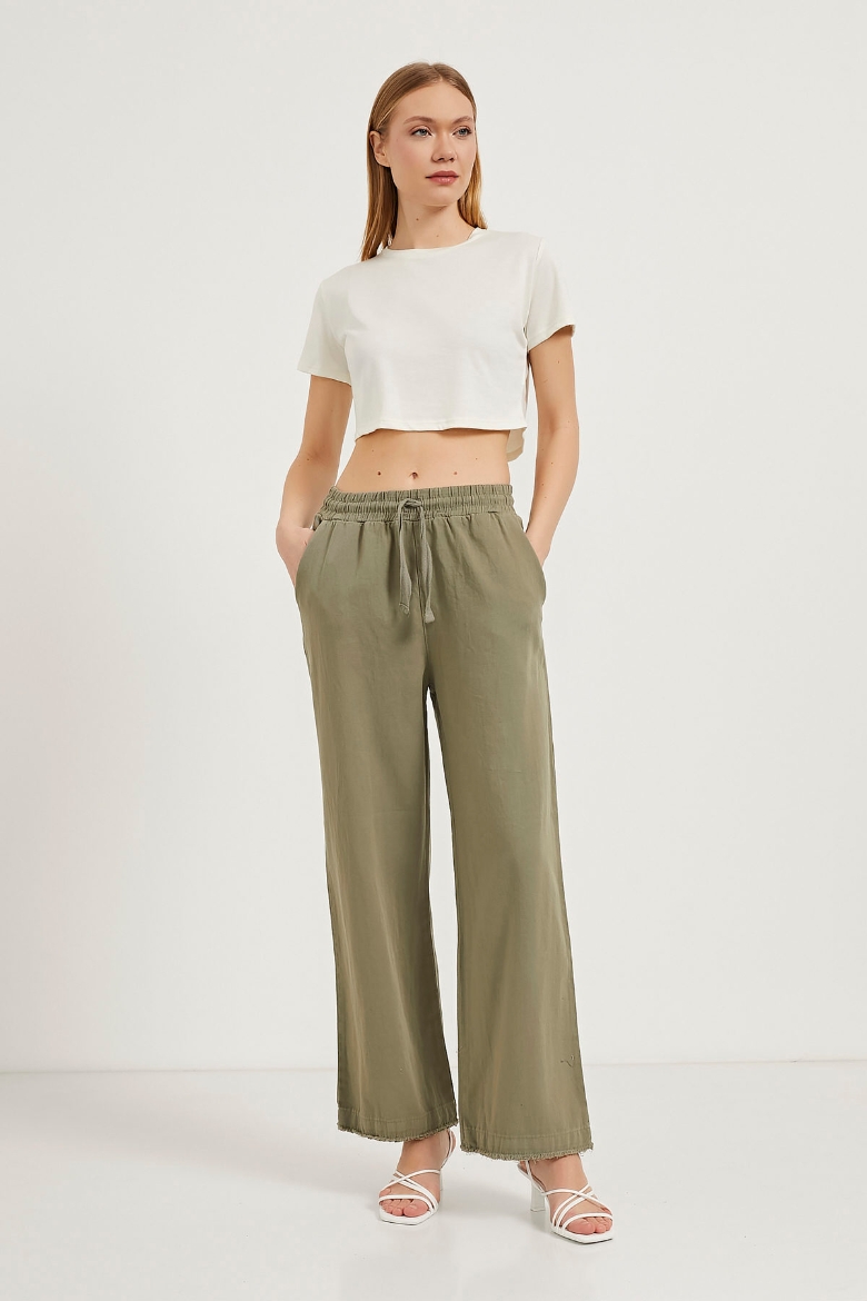 Paça Püsküllü Bol Paça Gabardin Pantolon