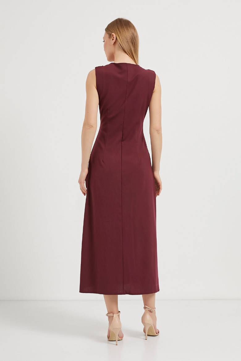 ARMALIFE 4784 ÖNÜ DÜĞMELİ KOLSUZ DOKUMA MAXI KADIN ELBİSE