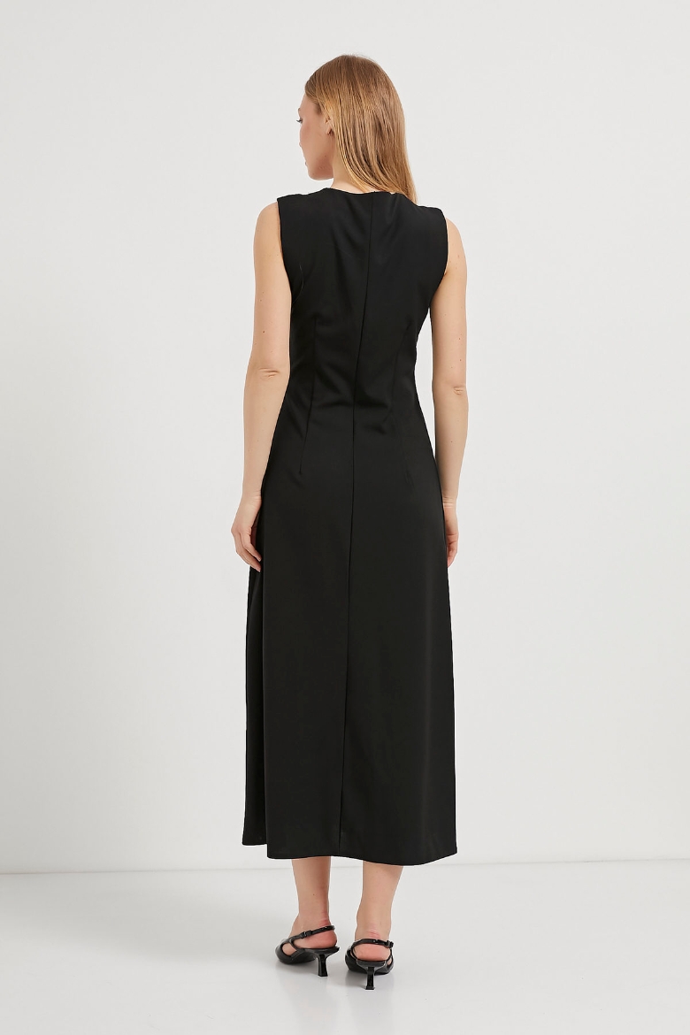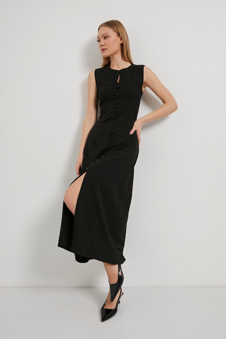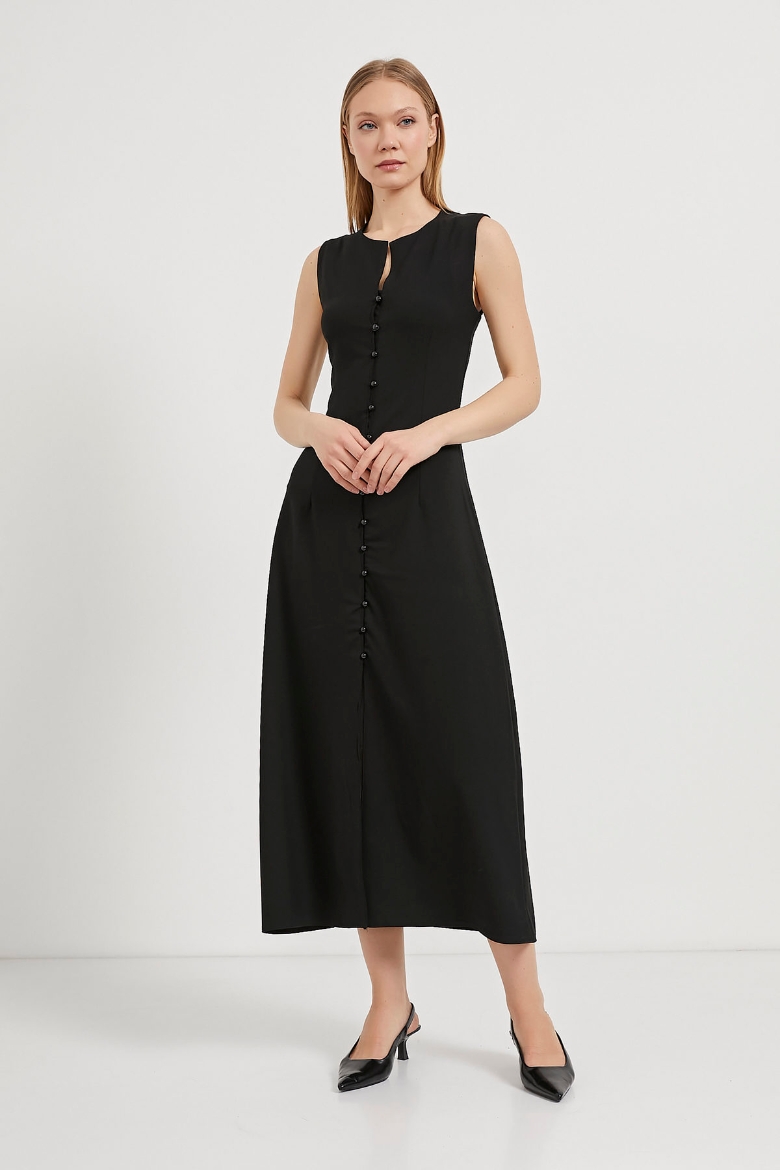 ARMALIFE 4784 ÖNÜ DÜĞMELİ KOLSUZ DOKUMA MAXI KADIN ELBİSE