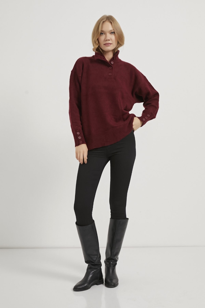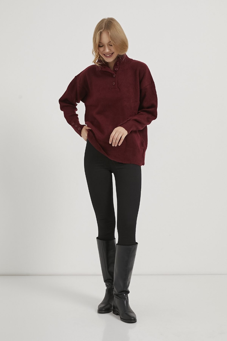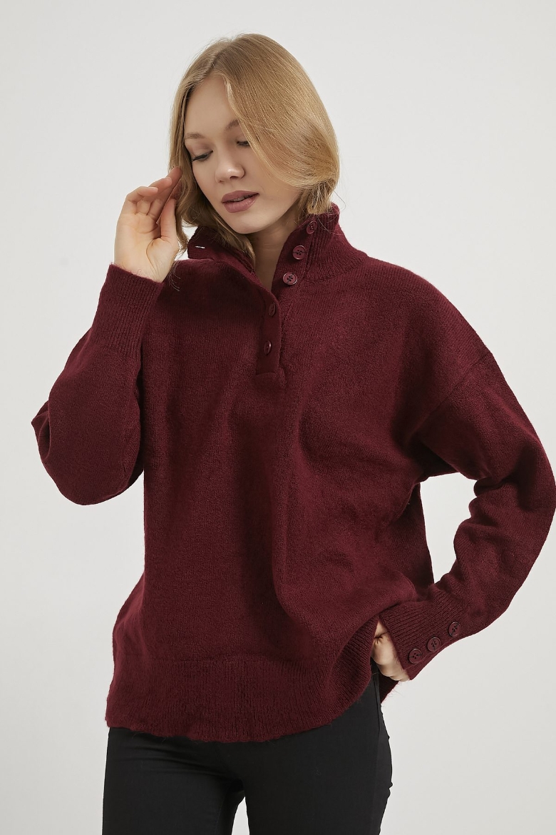 ARMALIFE 4786 YAKA KOL DÜĞME DETAYLI TRİKO KADIN KAZAK