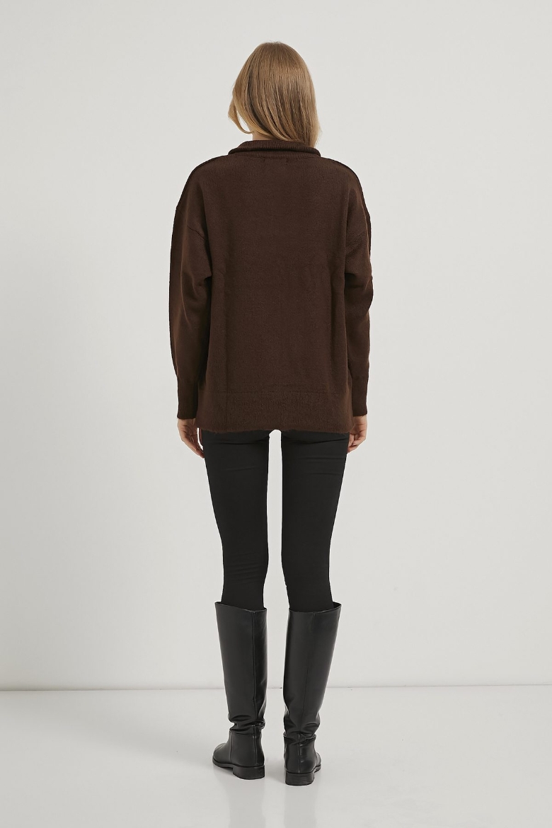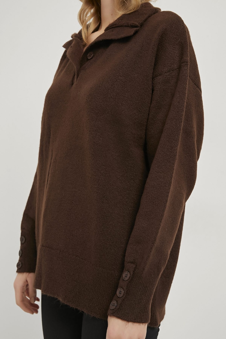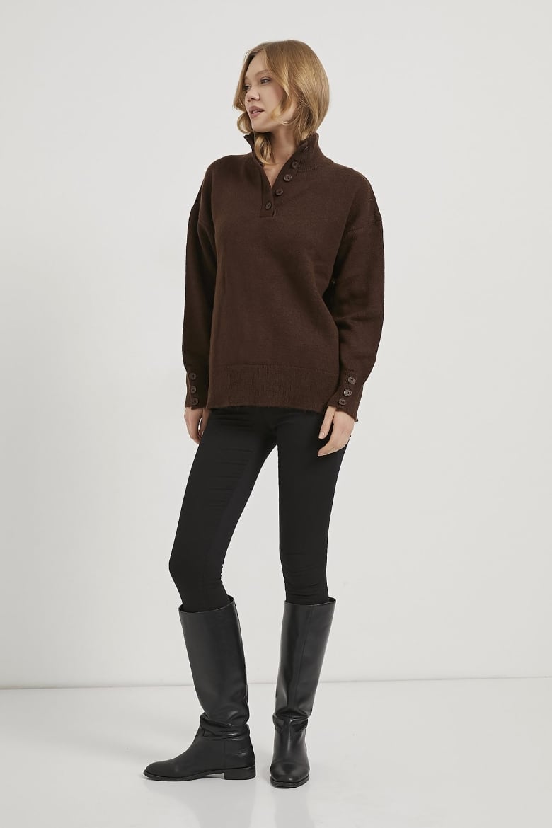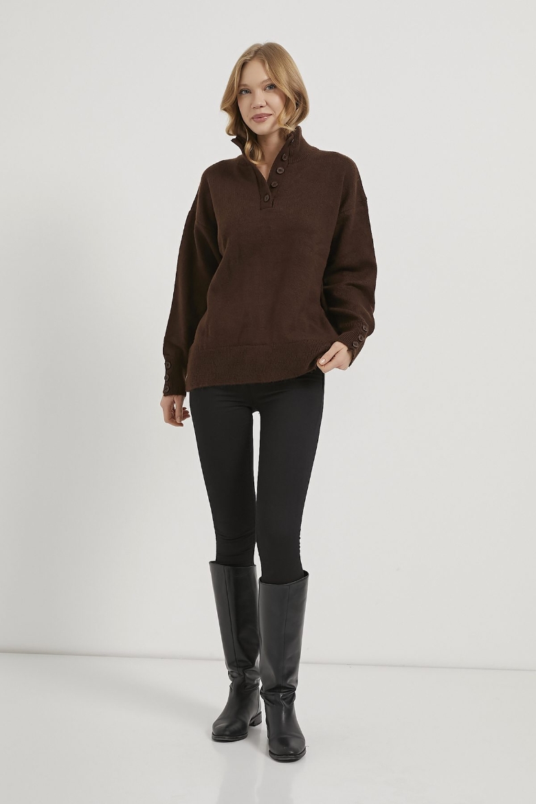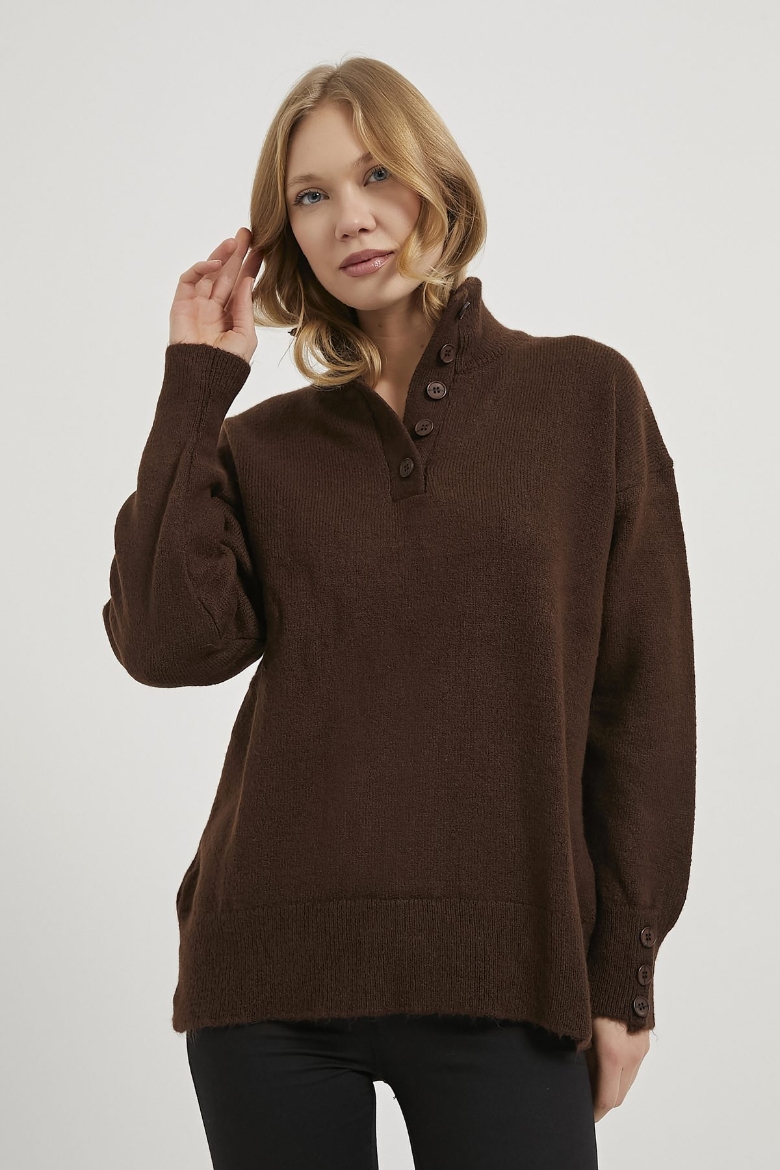 ARMALIFE 4786 YAKA KOL DÜĞME DETAYLI TRİKO KADIN KAZAK