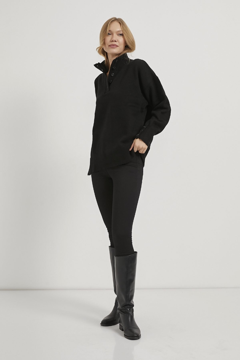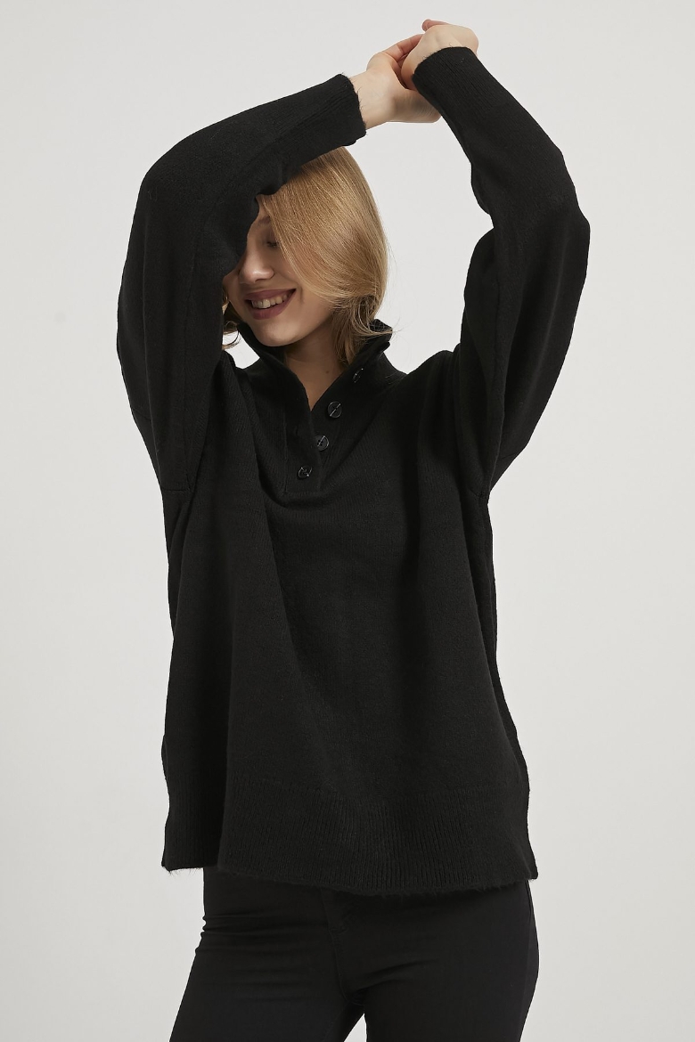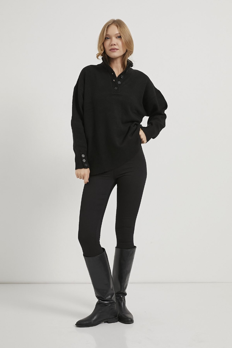 ARMALIFE 4786 YAKA KOL DÜĞME DETAYLI TRİKO KADIN KAZAK