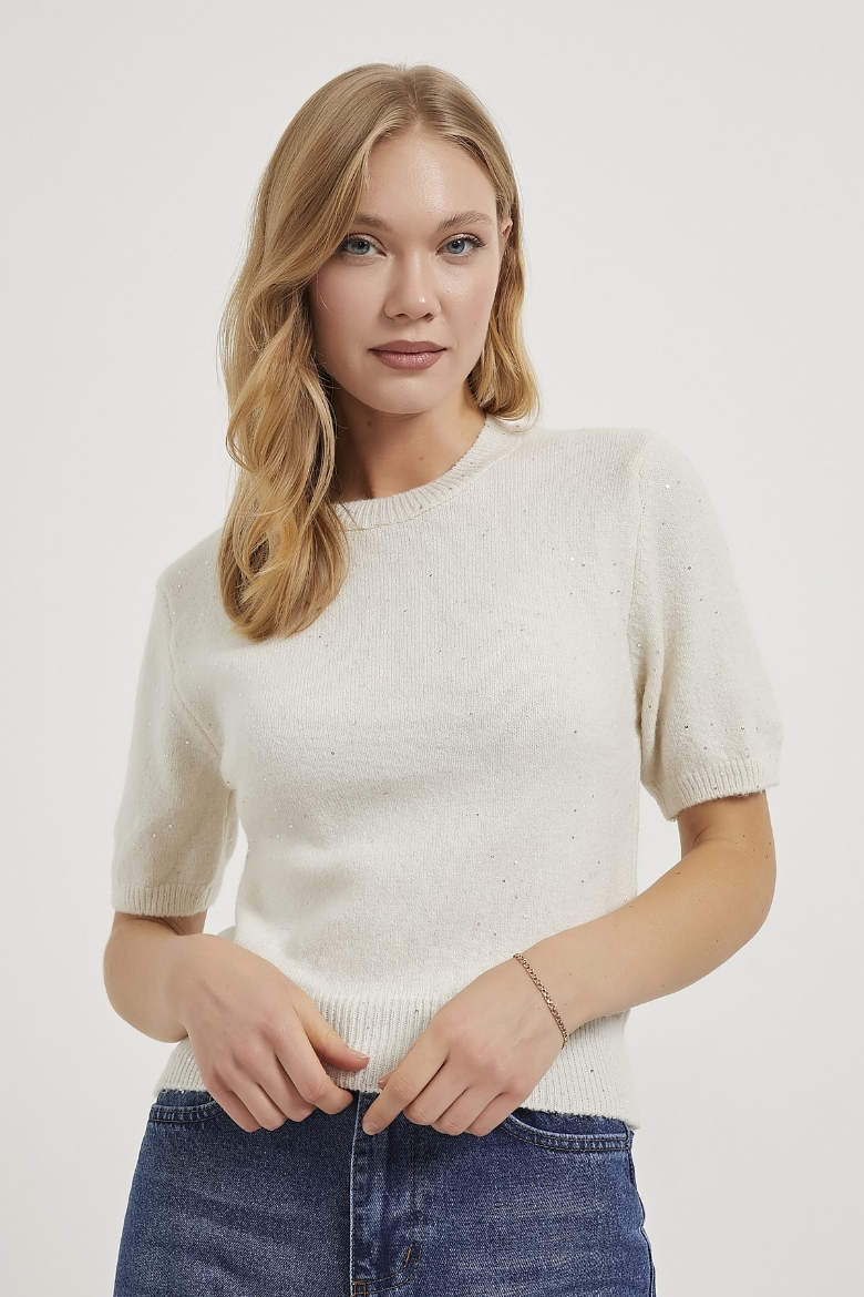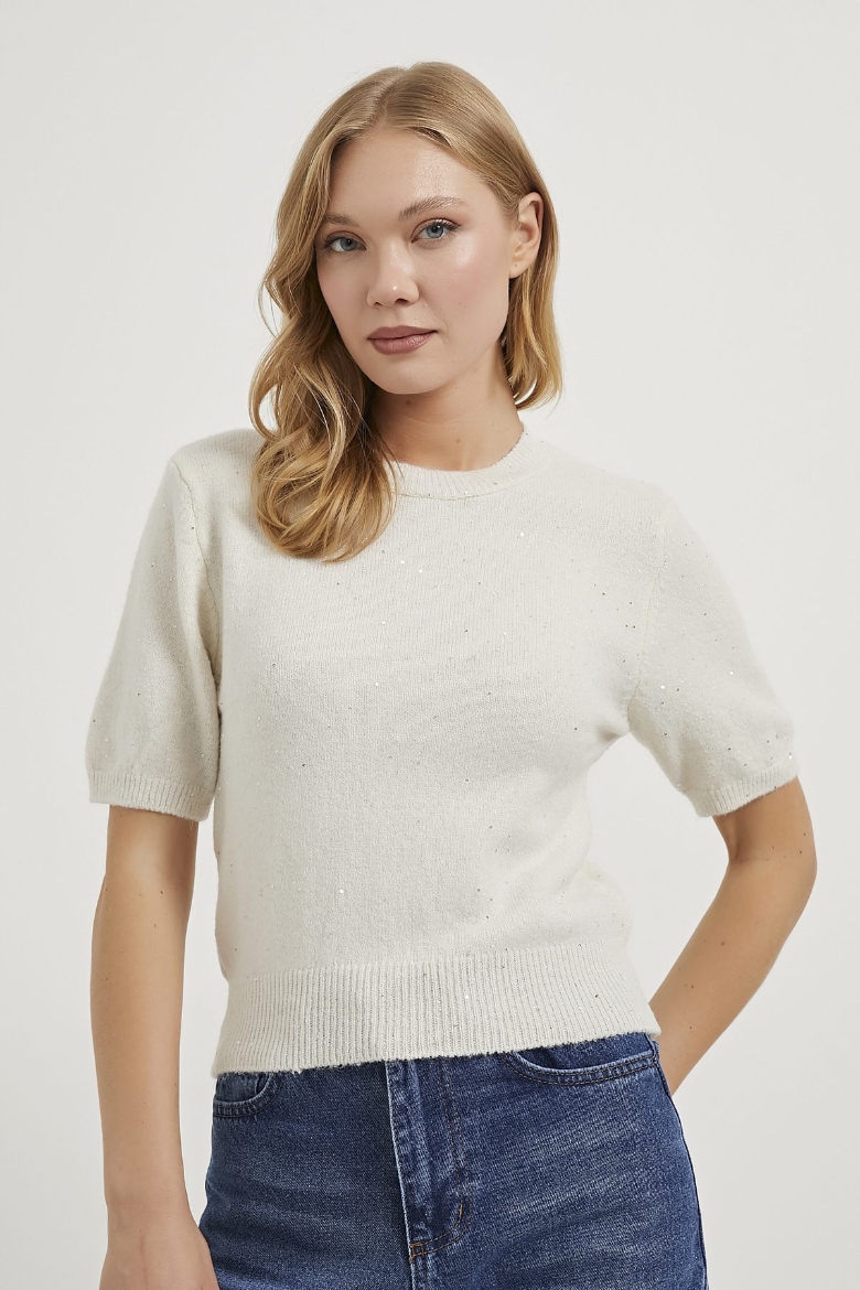 ARMALIFE 4818 BİS YAKA PREMIUM PARLAK KISA KOL KADIN KAZAK