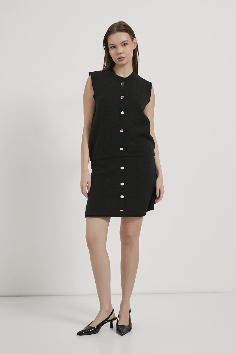 ARMALIFE 4982 GOLD DÜĞMELİ TRİKO YELEK ETEK KADIN TAKIM