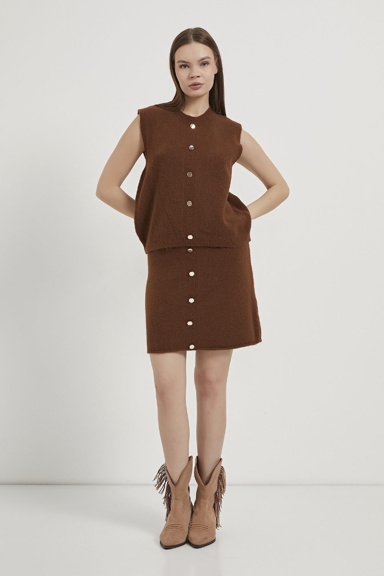 ARMALIFE 4982 GOLD DÜĞMELİ TRİKO YELEK ETEK KADIN TAKIM