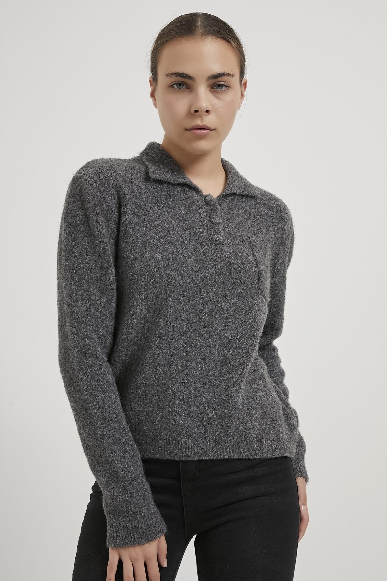 ARMALIFE 4983 YAKA DÜĞME DETAYLI KADIN TRİKO KAZAK