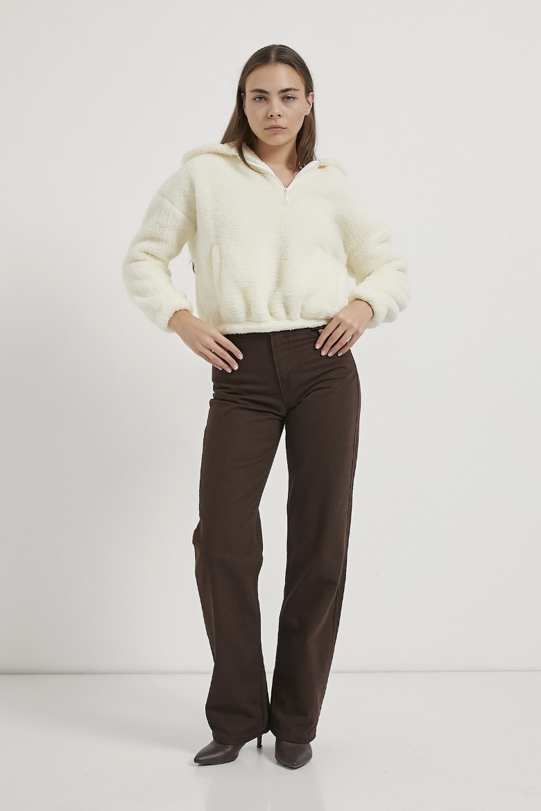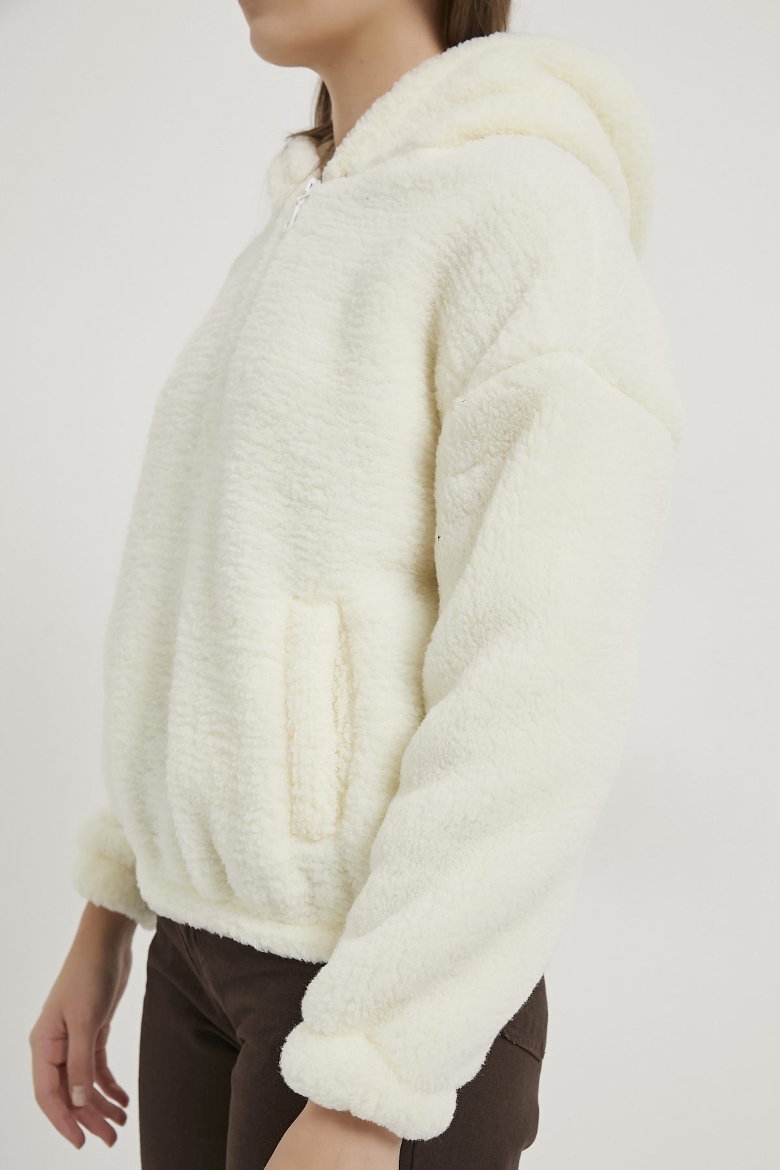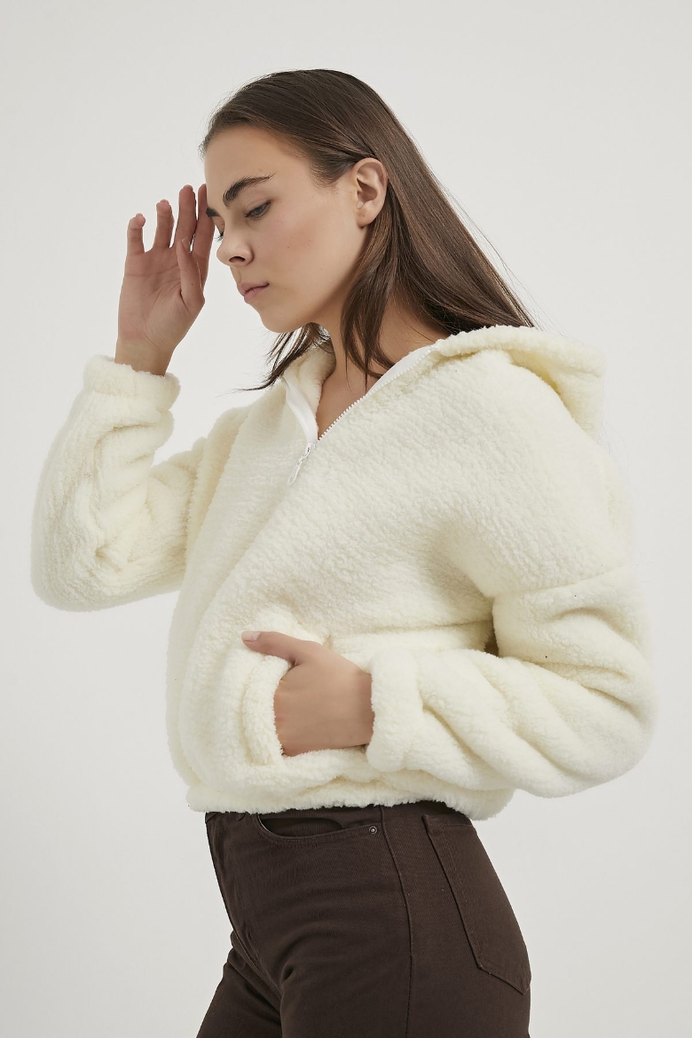 ARMALIFE 5038 YAKASI FERMUARLI KAPÜŞONLU PELUŞ KADIN SWEAT