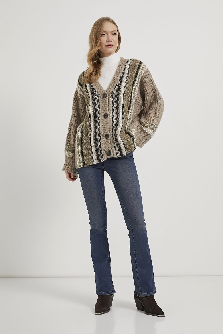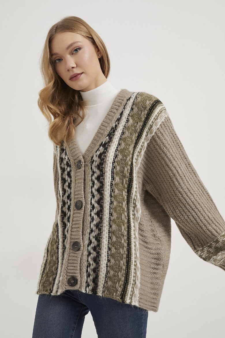 ARMALIFE 5057 ETNİK DESENLİ SALAŞ TRİKO KADIN HIRKA