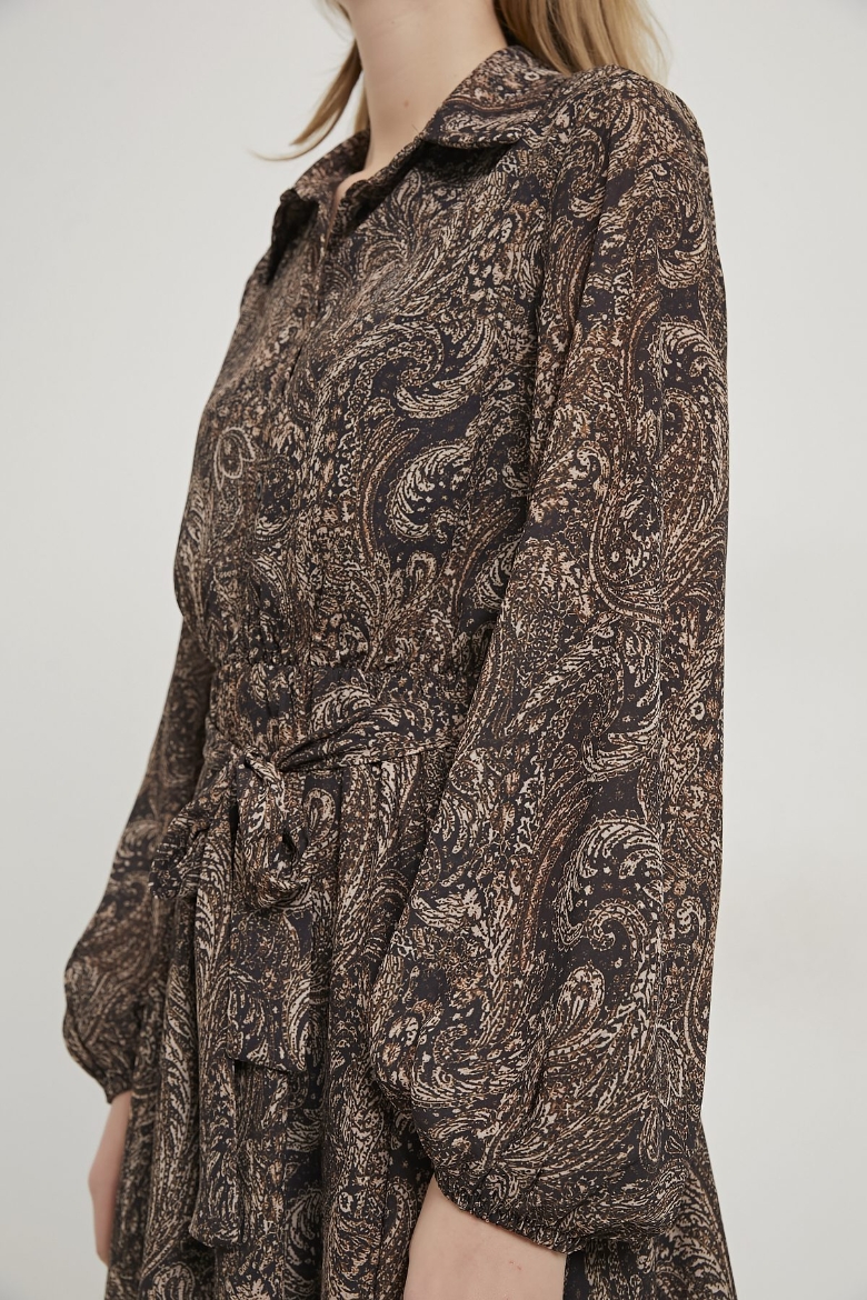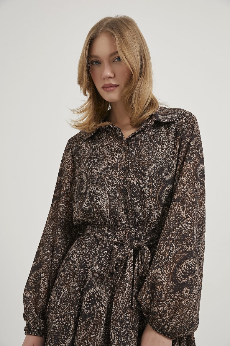 ARMALIFE 511053 DESENLİ GÖMLEK YAKA BELİ KUŞAKLI MİNİ KADIN ELBİSE