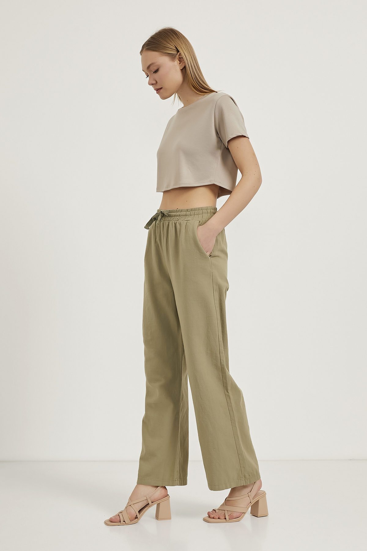 ARMALIFE 5118 DOKULU BELİ LASTİKLİ PALAZZO KADIN PANTOLON