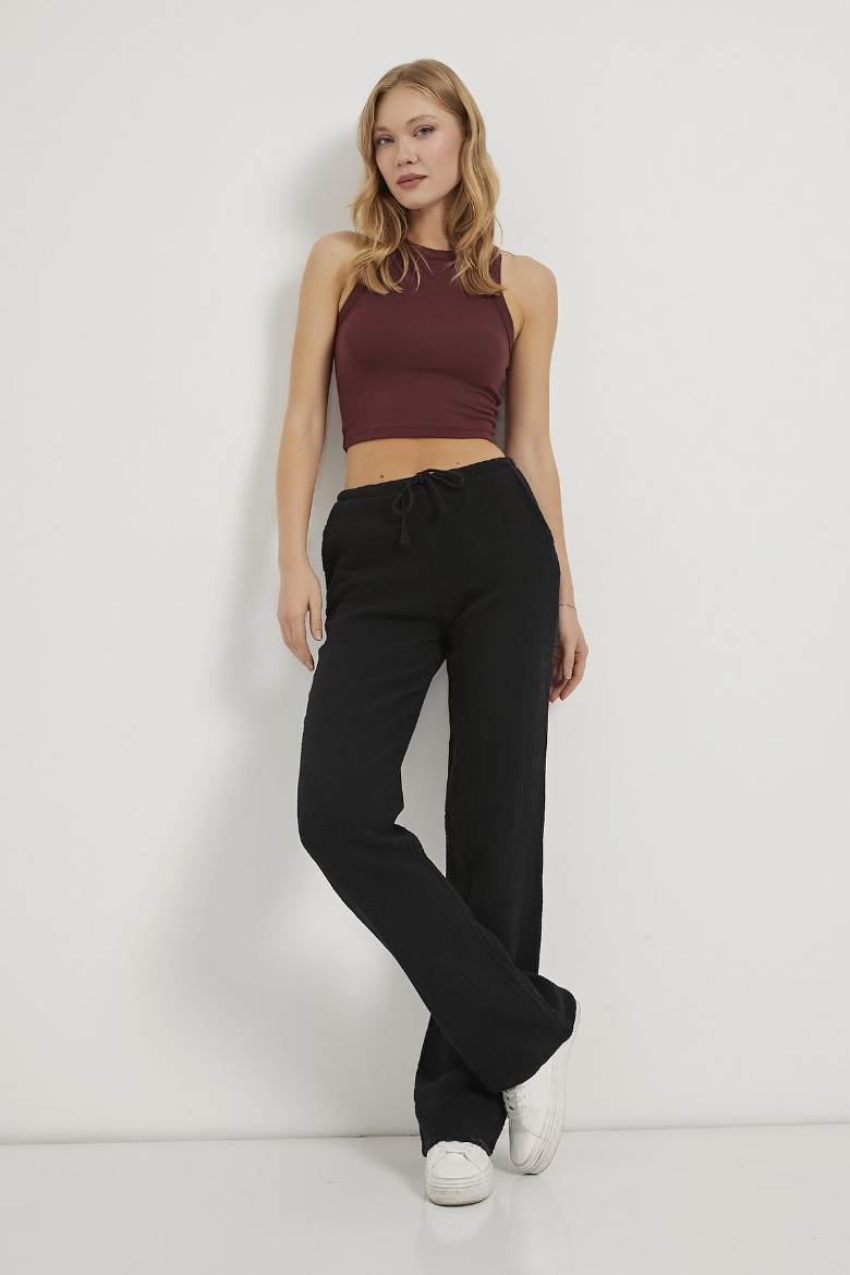 ARMALIFE 5502 BELİ İNCE LASTİKLİ SALAŞ MÜSLİN KADIN PANTOLON