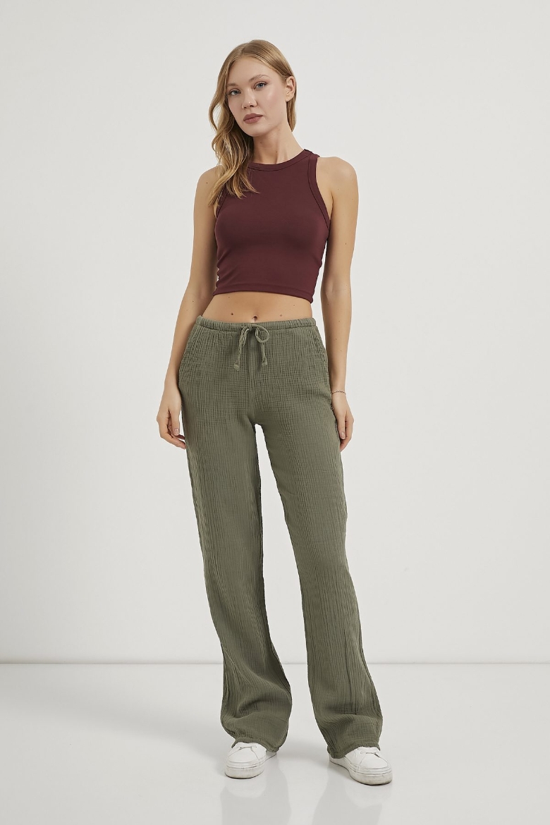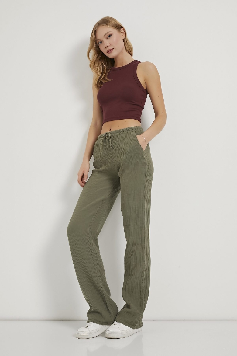 ARMALIFE 5502 BELİ İNCE LASTİKLİ SALAŞ MÜSLİN KADIN PANTOLON
