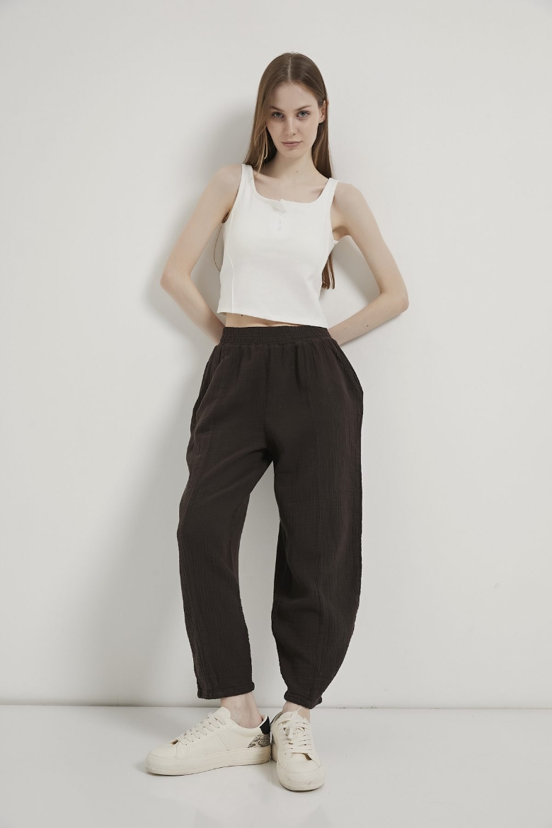 ARMALIFE 5505 BELİ LASTİKLİ BALON FİT MUSLİN KADIN PANTOLON