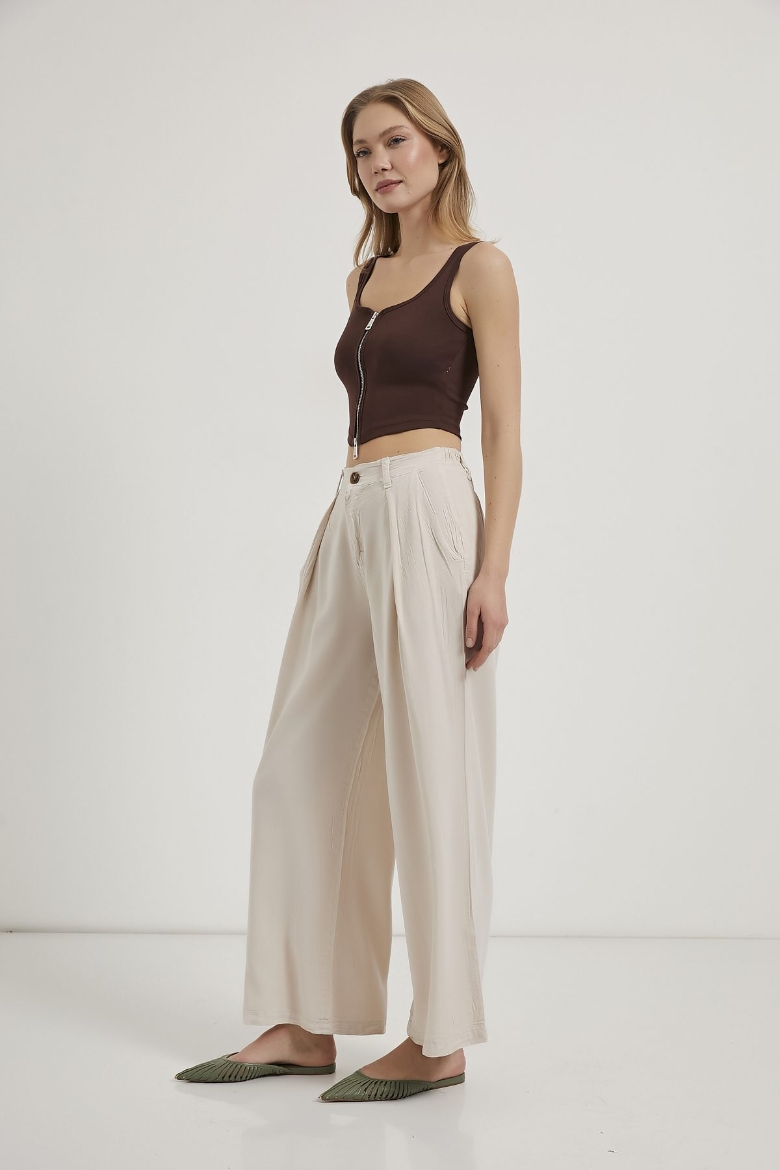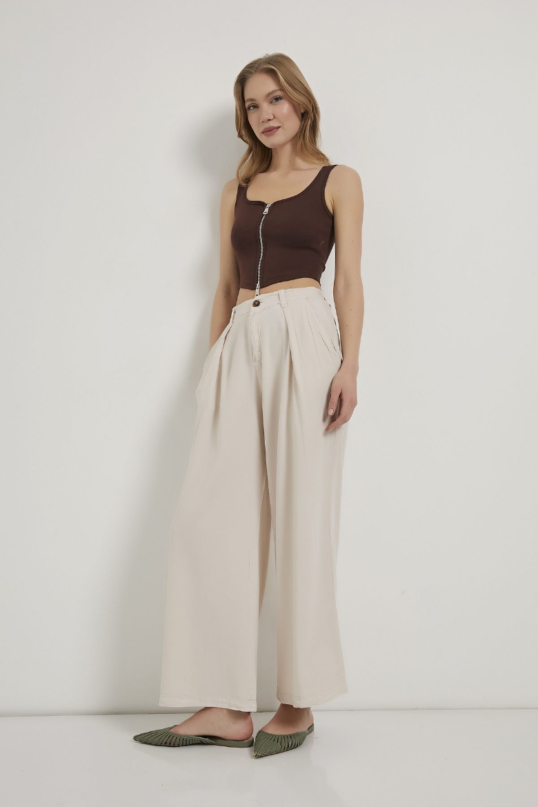 ARMALIFE 5515 TENCEL BELİ LASTİKLİ DÜĞMELİ PREMIUM PALAZZO KADIN PANTOLON