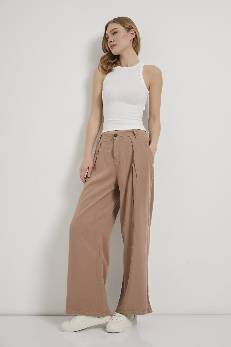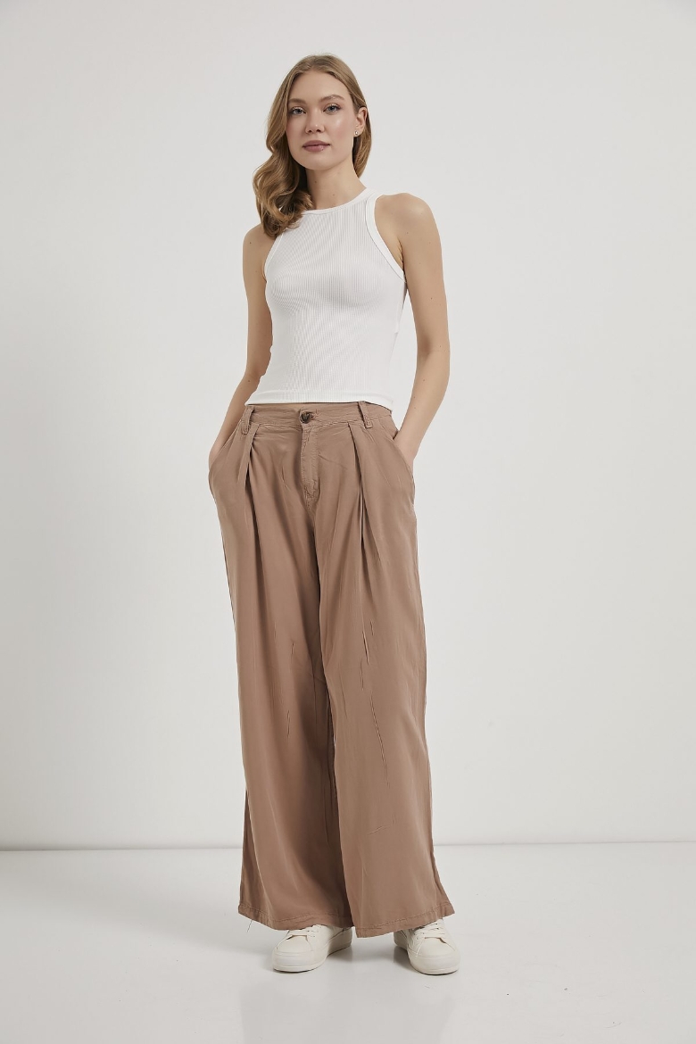 ARMALIFE 5515 TENCEL BELİ LASTİKLİ DÜĞMELİ PREMIUM PALAZZO KADIN PANTOLON