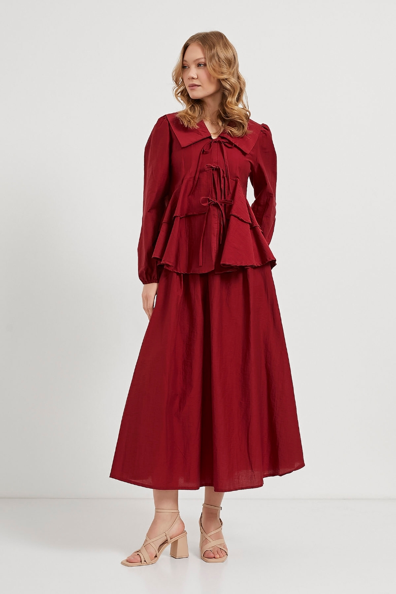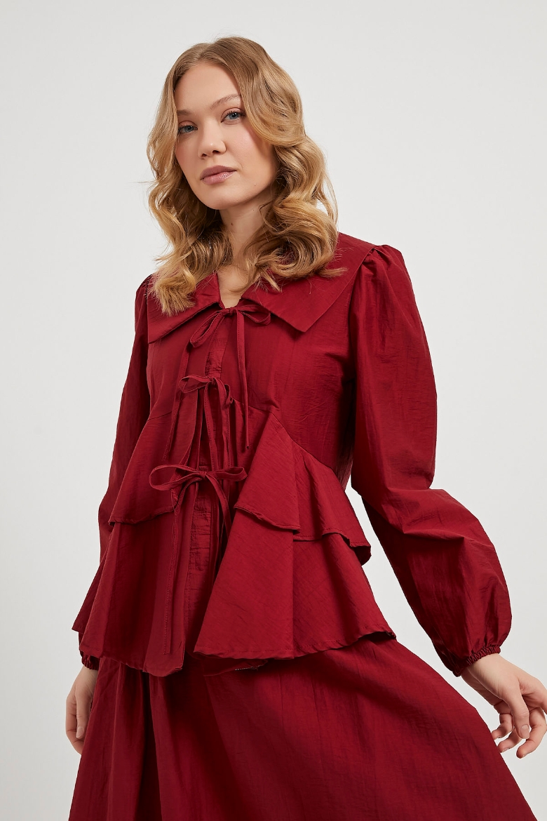 ARMALİFE 6038 ÖNÜ BAĞCIKLI VOLANLI PREMIUM KADIN BLUZ