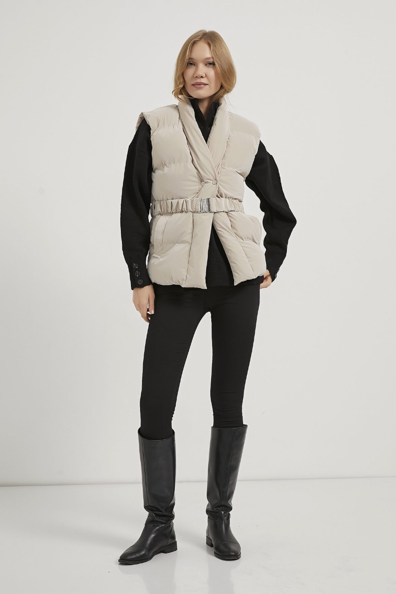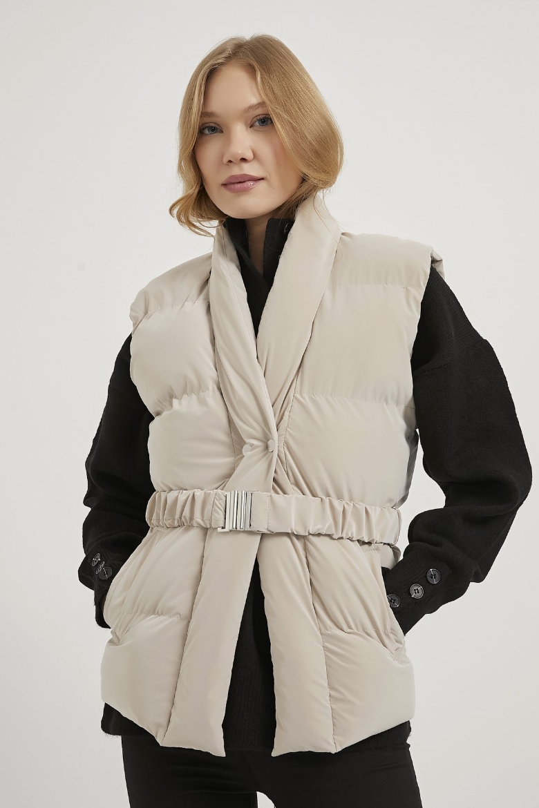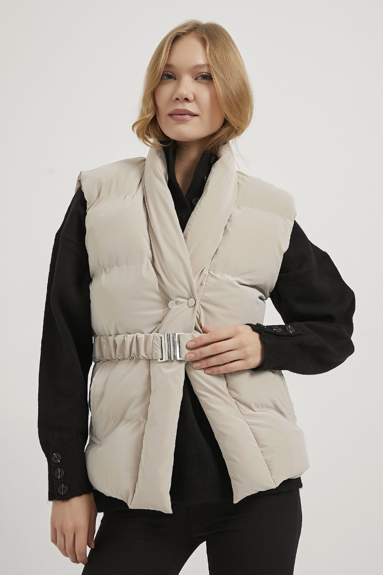 ARMALIFE 60547 KEMER DETAYLI CEPLİ KRUVAZE YAKA KADIN YELEK