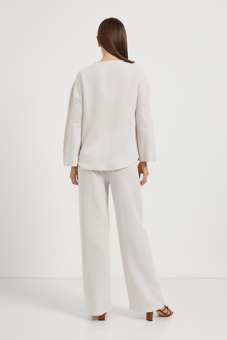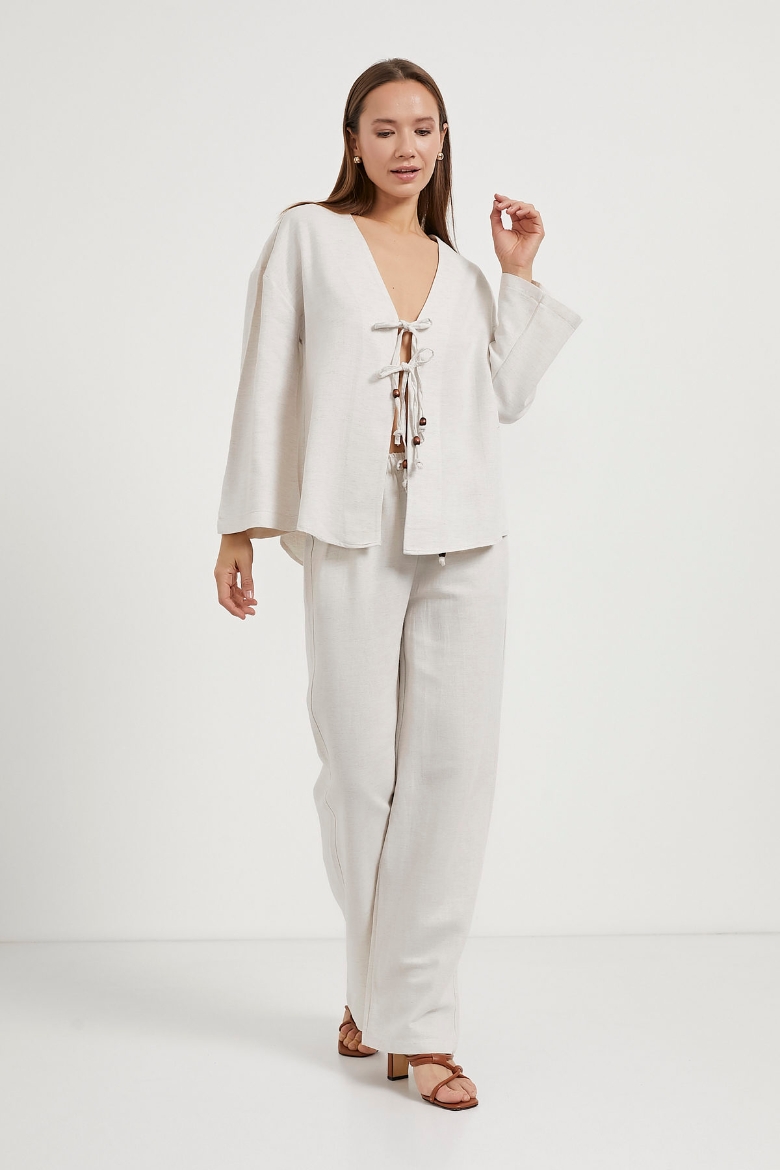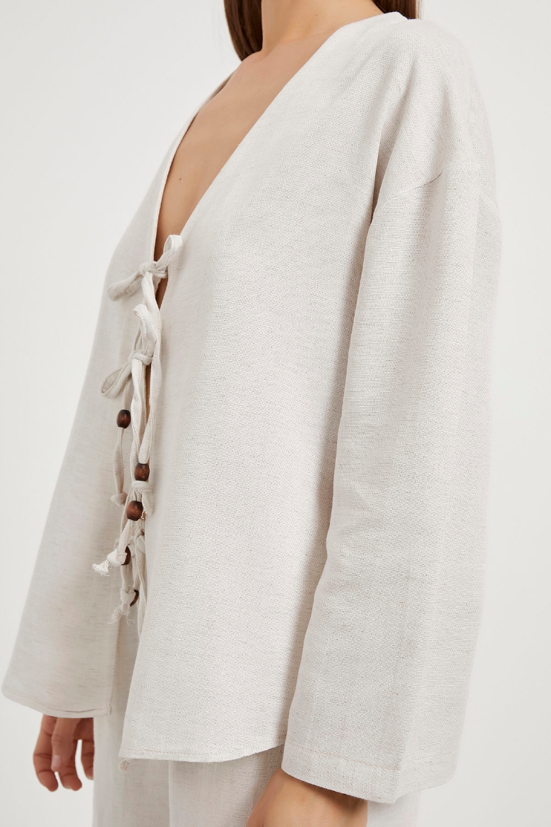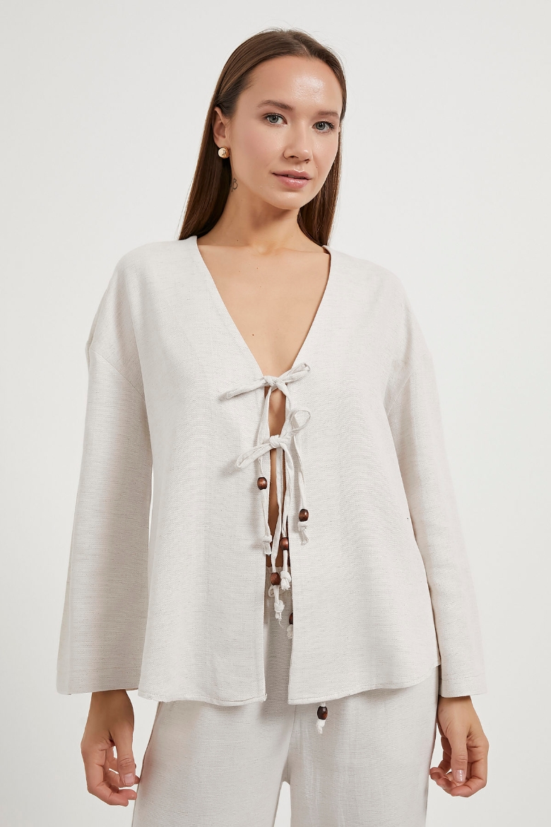ARMALIFE 6190 ÖNÜ BAĞCIKLI KETEN GÖRÜNÜMLÜ KADIN BLUZ