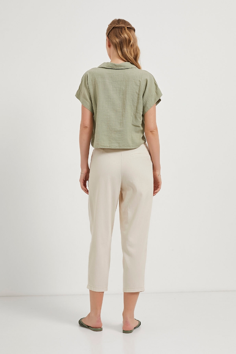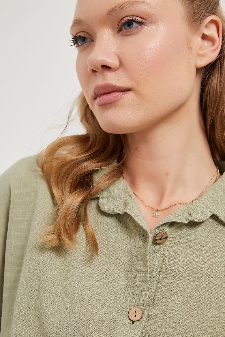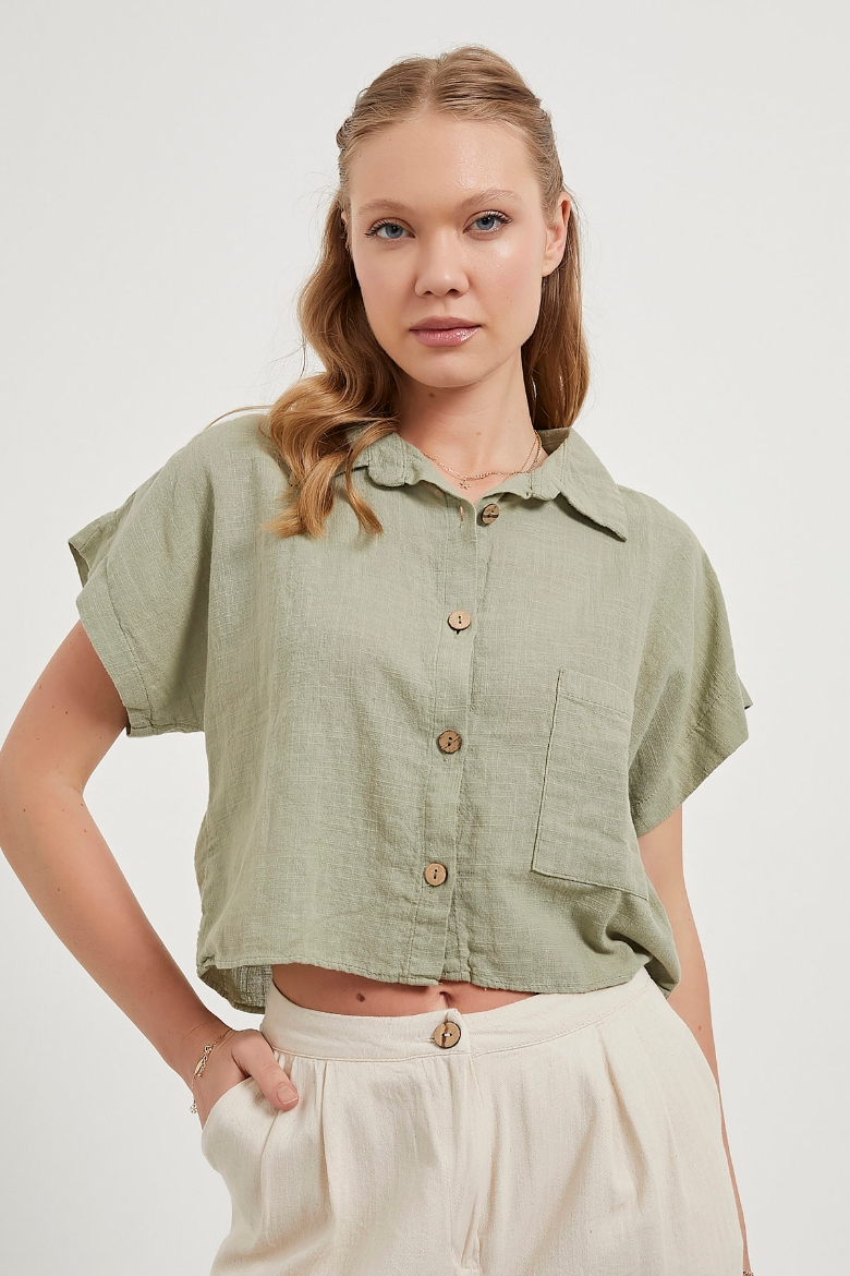 ARMALIFE 6524 KETEN GÖRÜNÜMLÜ KISA KOL CROP KADIN GÖMLEK