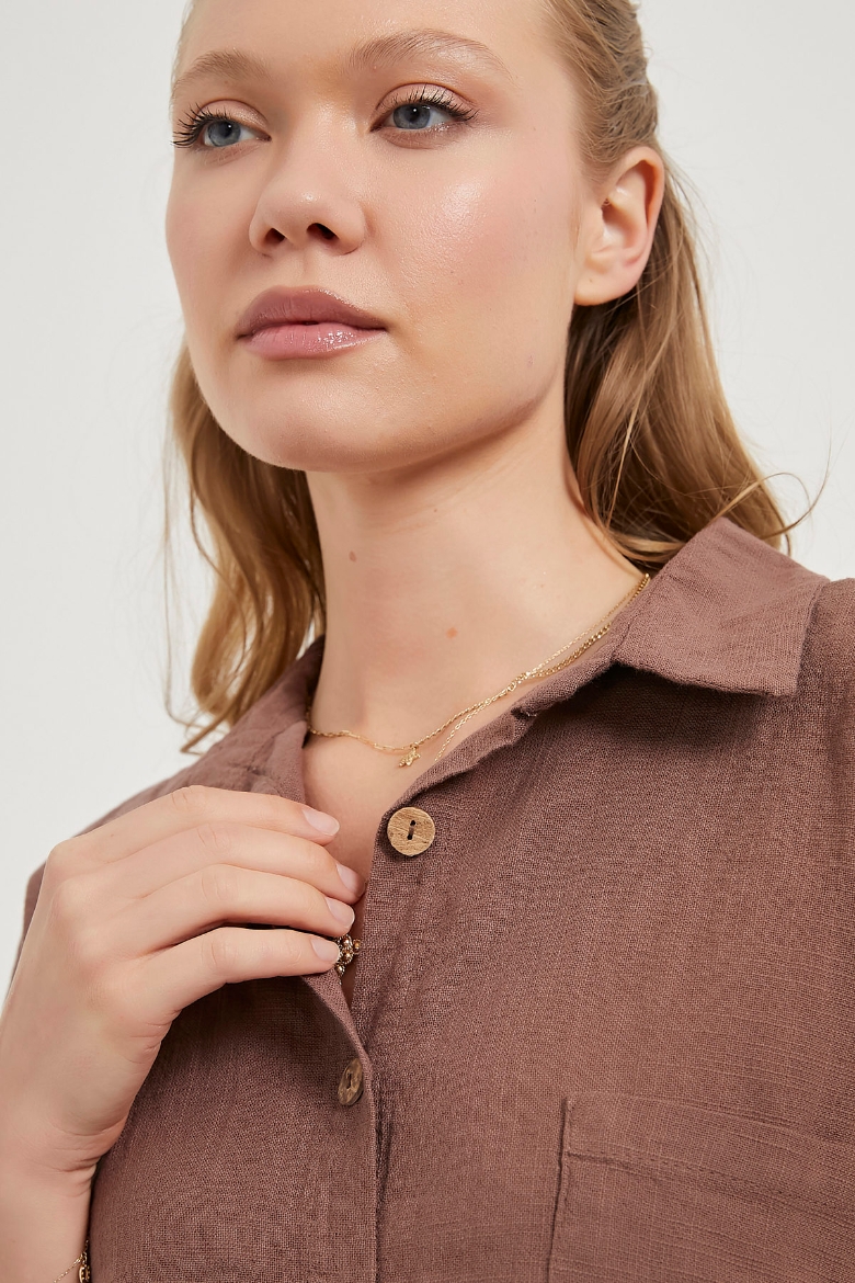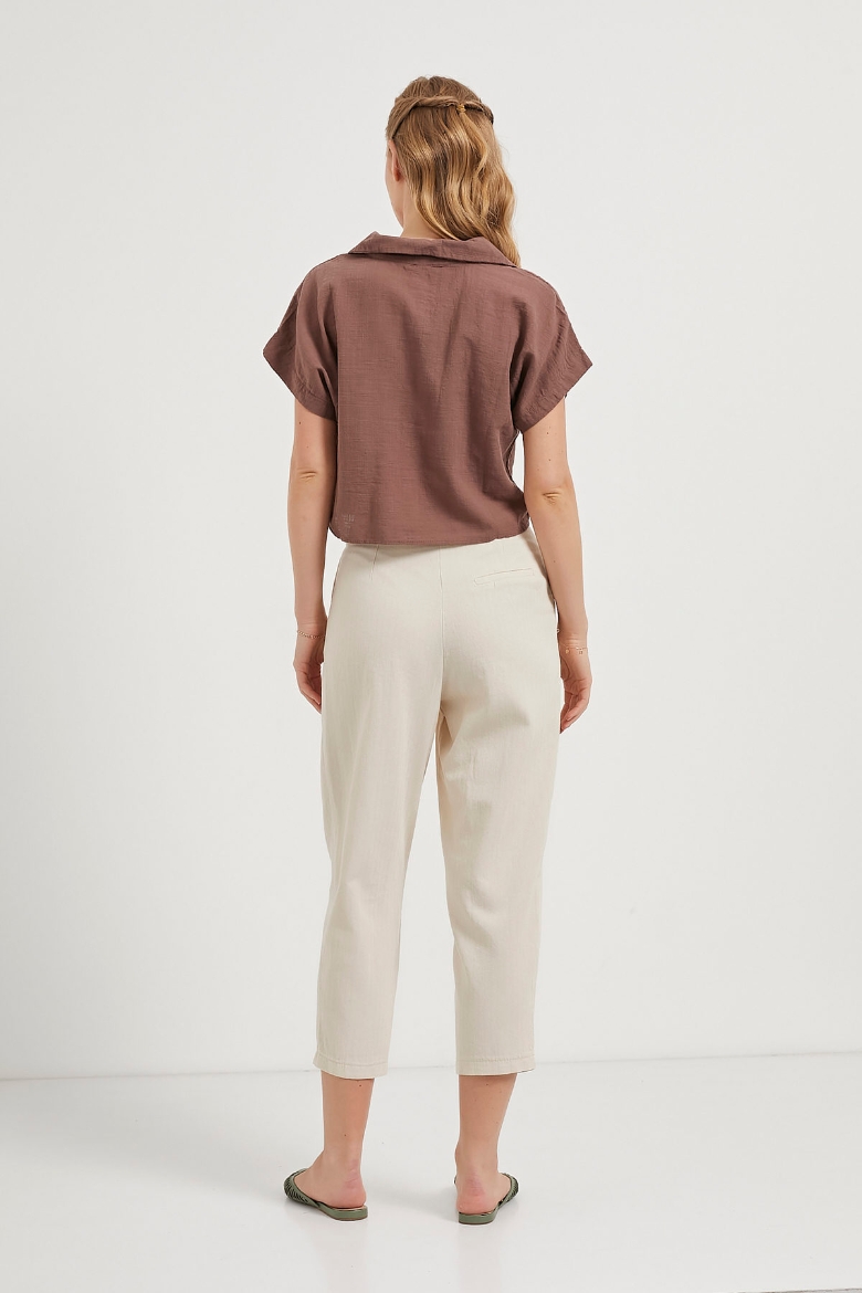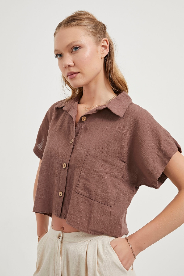 ARMALIFE 6524 KETEN GÖRÜNÜMLÜ KISA KOL CROP KADIN GÖMLEK