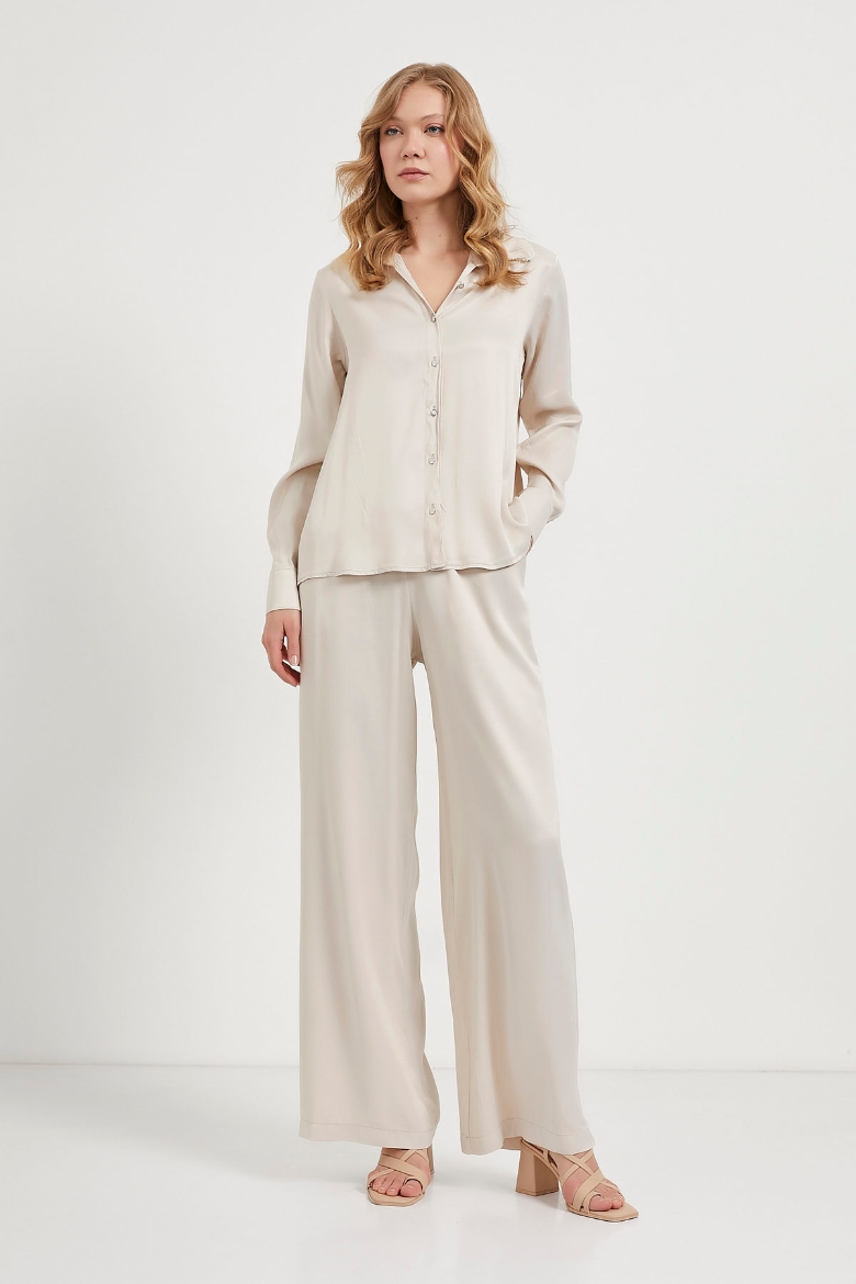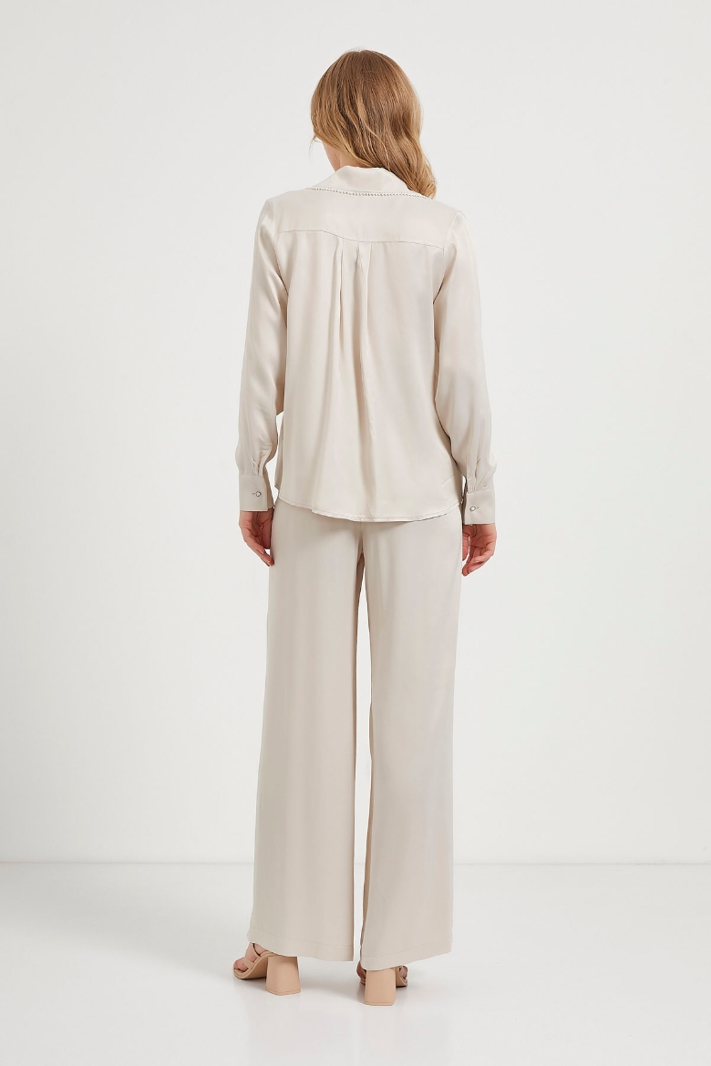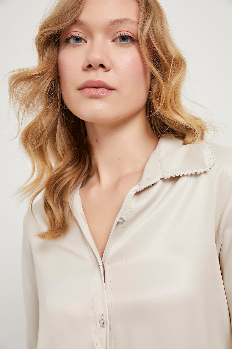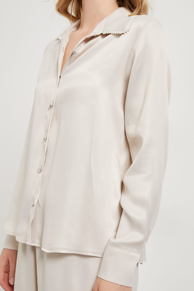 ARMALIFE 6533 YAKA AKSESUAR DETAYLI SATEN DOKULU KADIN GÖMLEK